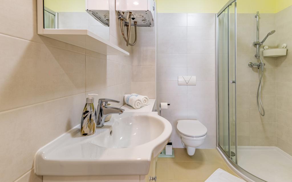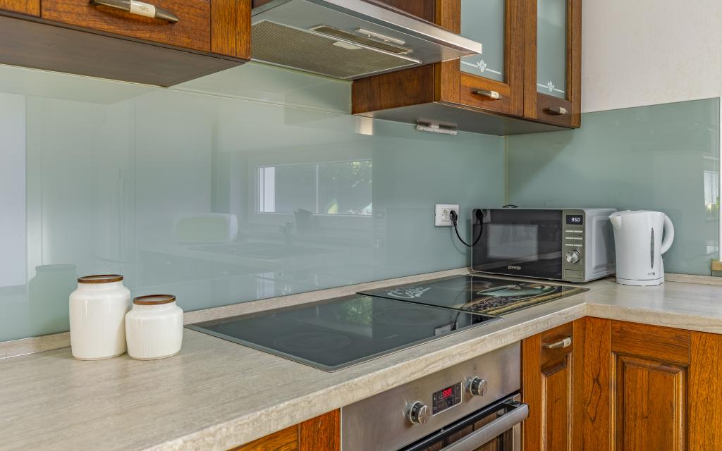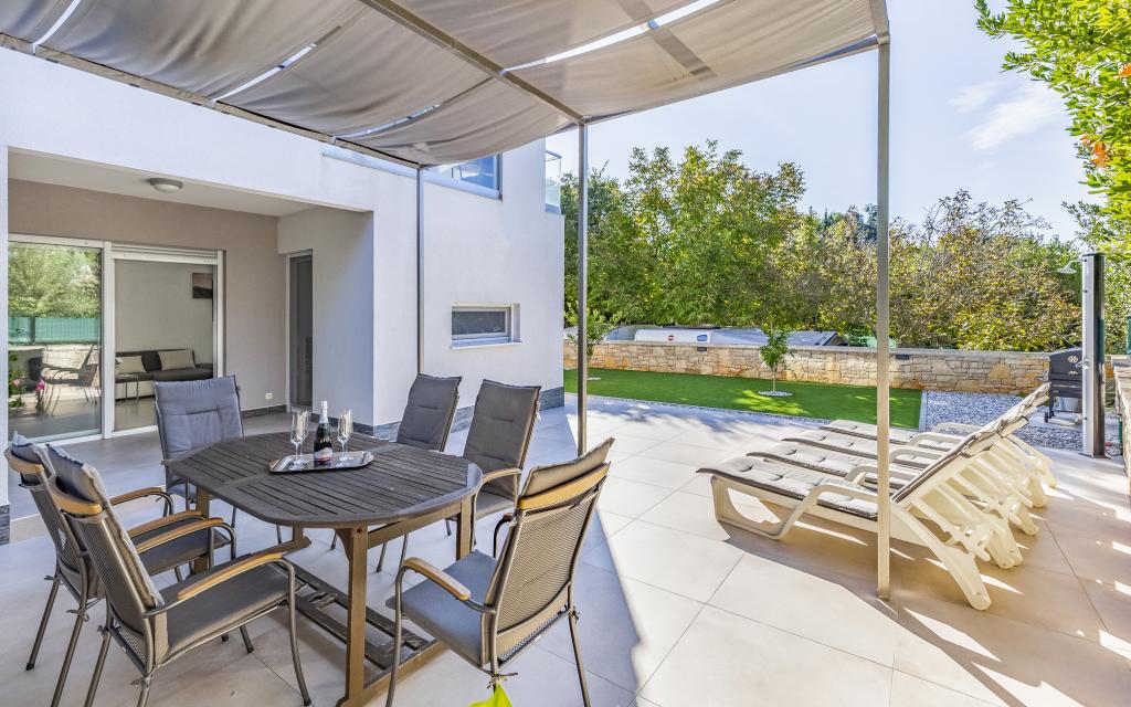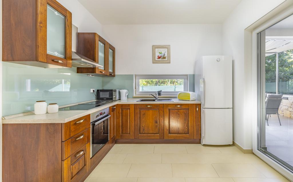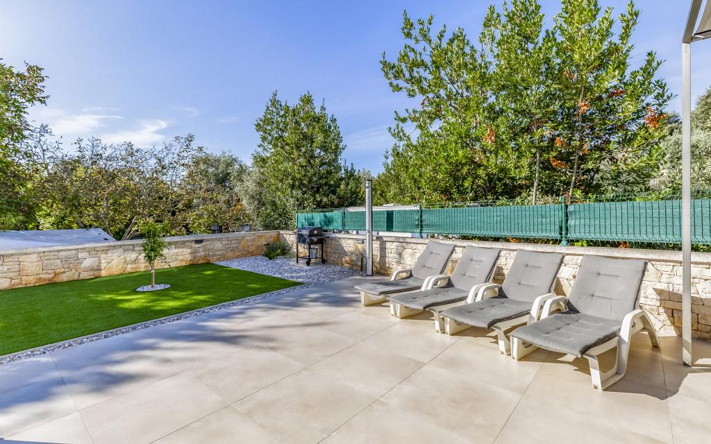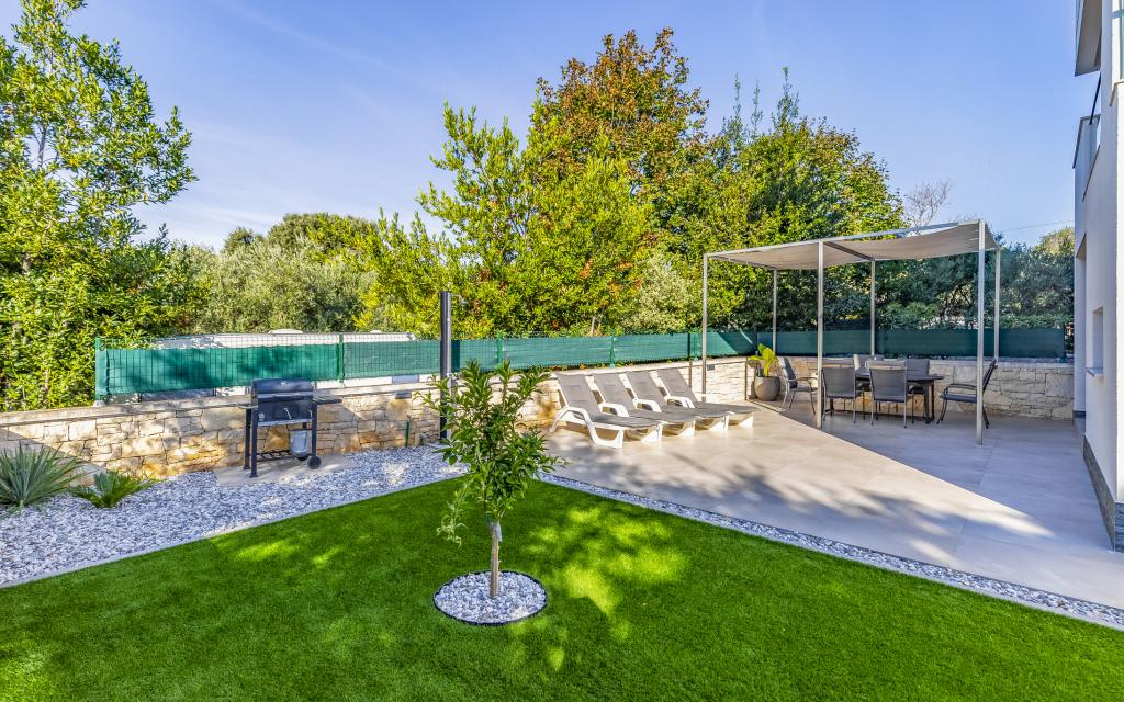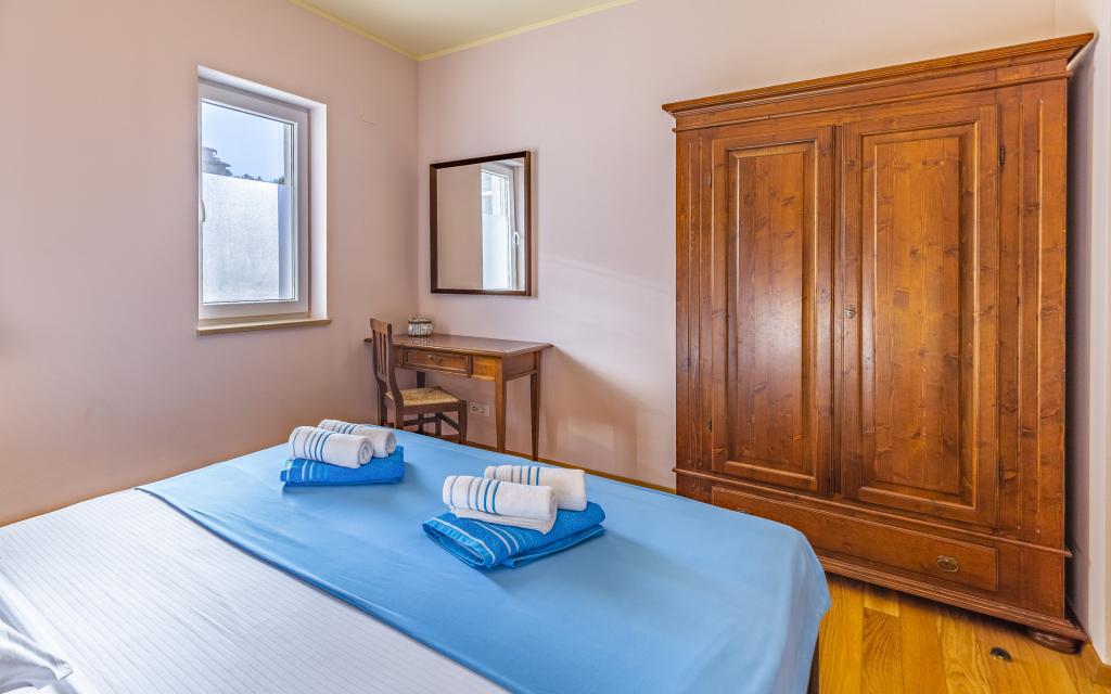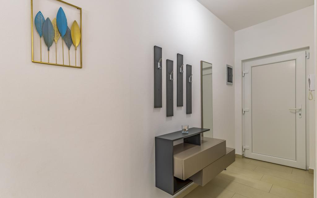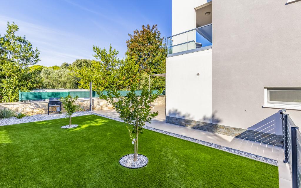 Teljesen és a standardon felül berendezett apartman (80 m2) kiváló helyen, Banjol csendes részén, mindössze 5 perc (300 m) sétára a környék legszebb strandjaitól. Az apartman egy három apartmanból álló lakóépület földszintjén található. Az apartmanhoz saját kert (100 m2) tartozik terasszal, asztallal, nyugágyakkal, kültéri zuhanyzóval és grillezővel, amely kellemes társasági életet és nagyfokú magánéletet tesz lehetővé, és különösen alkalmas gyermekes családok számára. Az épület mellett saját parkoló található, közvetlen hozzáféréssel a kerthez és a teraszhoz. A kertet 2024-ben teljesen felújították. Az egész épületet biztonsági kerítés védi (kártyás beléptetés). Az apartmanban 2 hálószoba található dupla ággyal, 2 fürdőszoba WC-vel és zuhanyzóval, tágas nappali kihúzható kanapéval, étkező és konyha. Az apartman légkondicionált és télen fűthető (padlófűtés), valamint beltéri kandallóval rendelkezik, így alkalmas az őszi és téli hidegebb hónapokban való tartózkodásra is. Az apartman közvetlen közelében számos bár és étterem, valamint díszes üzlet található.