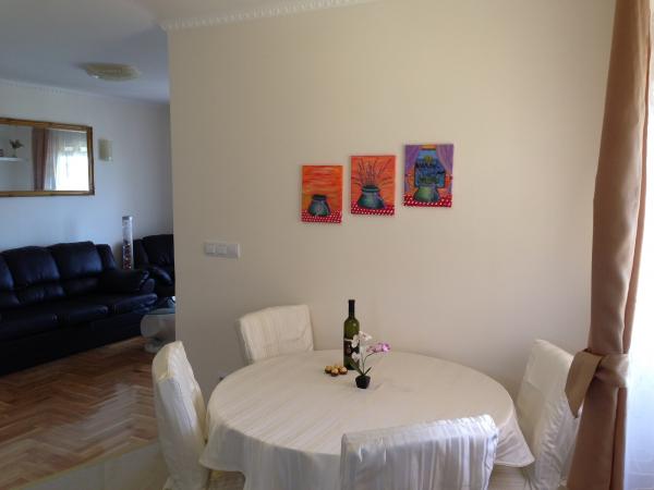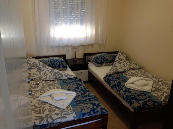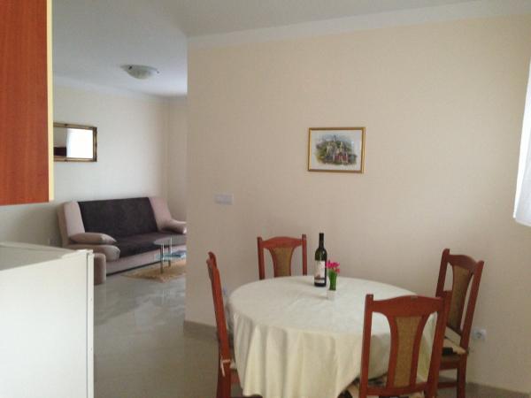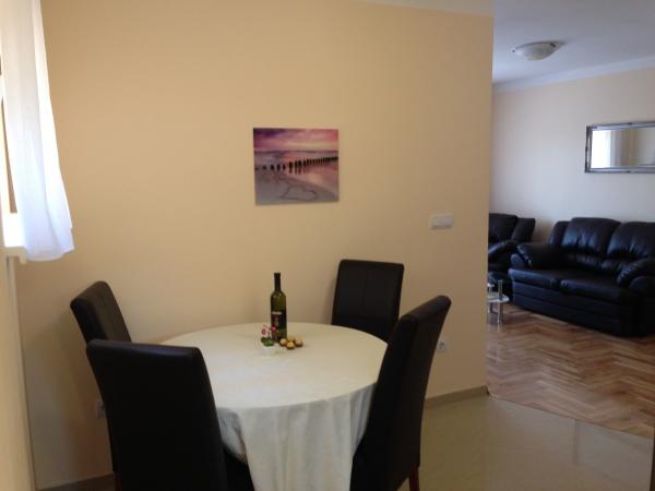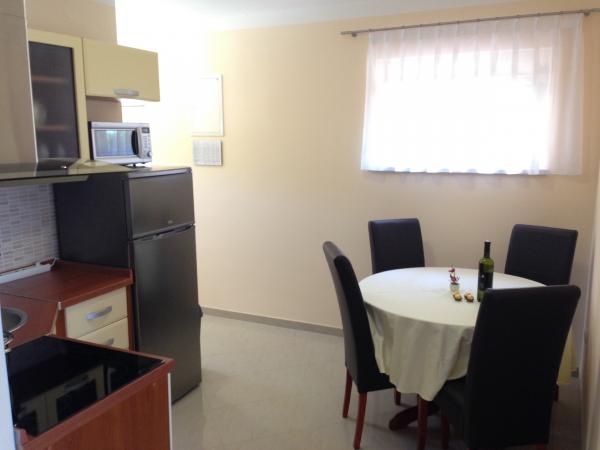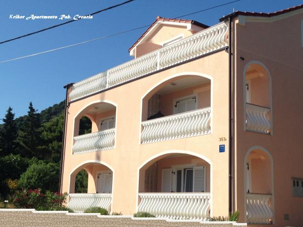 Lakossági adót az az ár tartalmazza.Az apartmanok egy bejárat, két hálószoba, nappali, konyha, étkező, fürdőszoba, erkély. + Parkolóhely. Az apartmanok a központi városrész távol a 100m a strand, éttermek, séta kb 400m. A távolság a központtól a város Rab (történelmi városrész), mintegy 4 km-re található, ahol rendszeres buszjárat, taxi, taxi hajóval, és tud járni, és az új sétány a part mentén. Az ár tartalmazza: Idegenforgalmi adó, internet - (Wi-Fi), telefon - (vészhelyzet), konyha - (teljesen felszerelt), Air (hűtés / fűtés) TV-rádió (Max TV szolgáltatás több mint 200 prémium csatornák), széf, ágynemű, törölköző, szappan, közművek, tisztítás, stb