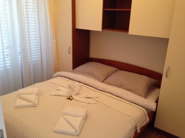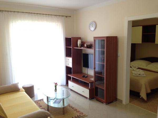 Úgy döntött, hogy látogassa meg a Rab-sziget, és keres egy csendes helyet a vakáció kilátással a tengerre és a természet? Rab miatt az enyhe mediterrán éghajlat számos lehetőséget kínál a tökéletes nyaraláshoz, nem csak nyáron, hanem tavasszal és ősszel. A tökéletes hely egy családi nyaralás, és különben is, azúrkék kristálytiszta tenger és a híres érintetlen természet (gyönyörű homokos és kavicsos strandok, fenyőerdők és a kristálytiszta Adriai-tenger), ad a család egy csábító természeti szépsége évezredes kultúra, minden kéznél van . Kezeljük a család egy igazi nyaralás. Élvezze a strand, fordítson sporttevékenységek vagy egyszerűen csak pihenni a gyönyörű mediterrán környezetben. A választás a tiéd, és számunkra, hogy teljesítsük minden kívánságát. Ágyak száma 2 +, 3 +, 4 +, 4 +1 és 4 +2. Az apartmanok felszerelt, új minőségi bútorok és egyéb berendezések a lakásban biztosít kényelmes tartózkodást.