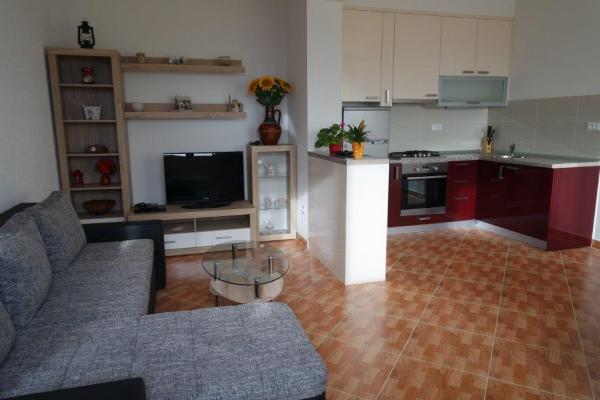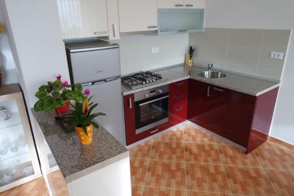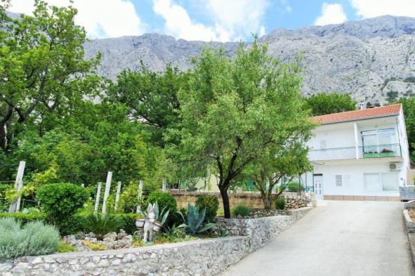 Apartman Ana része egy ház található, a kis falu Bast lábánál található a déli lejtőin a natúrpark hegy által körülvett természeti szépség, panorámás kilátás nyílik a tengerre és a szigetekre Brac és Hvar, 10 km-re a várostól nyugatra, 2, 5 km-re keletre Baska Voda. A lakás teljesen új, teljesen felszerelt, modern, 60m2, egy hálószoba egy franciaággyal és egy kanapéval, egy nappali kanapéval, konyha, étkező és fürdőszoba található. Az apartman légkondicionált, külön bejárattal, parkoló, műholdas TV, internet, nagy terasz, grill. Kivételesen vendégszeretettel egy csendes, meleg környezetben, gyönyörű kilátással a tengerre és a szigetekre teszi a nyaralást a lakásban Ana élvezetes és emlékezetes.