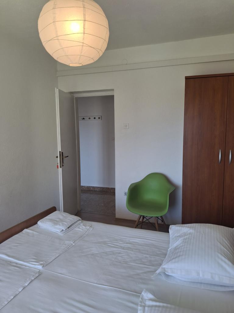 Légkondicionált apartmanok tengerre néző kilátással, mindössze 200 méterre a főstrandtól, 4 perc sétára 2+2 ÁGYAS APARTMAN - kényelmes. modern berendezésű apartman - 50 m2, külön hálószoba king size franciaággyal és kihúzható ággyal 2 fő részére a nappaliban. 4+ 1 ÁGYAS APARTMAN 2 hálószobával, nagy nappali kihúzható ággyal 1 fő - gyermek részére. Családok és párok számára alkalmas. Teljesen légkondicionált, 3 légkondicionáló egység. 3. ÁGYAS APARTMAN kényelmes apartman 2-3 fő részére erkéllyel - látványos kilátás a tengerre és a szigetekre. . A környéken éttermek találhatók, parkolás a ház mellett,.