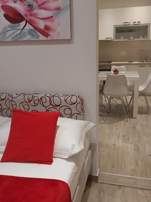 Baška Voda központjában találhatóunk, de egy csendes környéken, távol a nyári tömegtől. Kényelmesen berendezett, modern berendezésű és teljesen felszerelt apartmanokat kínálunk a gondtalan és kellemes nyaraláshoz. Hangsúlyozzuk a tenger és a Kék Zászlóval díszített strand közelségét!