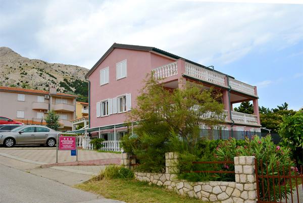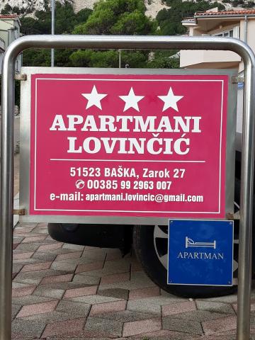 Mindössze 200 méterre a tengertől és 800 méterre a központtól, a Lovinčić apartmanok Baška csendes részén találhatók, ideális nyaralást kínálva. Kínálunk négy apartman. A 4-es típusú 2 apartman két kétágyas szobával rendelkezik, két pótággyal, nappali konyhával és fürdőszobával. A stúdió két férőhelyet kínál, konyhával és fürdőszobával. Minden apartman parkolást kínál az udvarban, légkondicionálót, internetet, tv-t, műholdas TV-t, kültéri grillt. Csak 2 perc sétára található az Adriai-tenger egyik legszebb, kavicsos Vela strandjától, kb. 2 km hosszú, amelynek minőségét a Kék Zászló is megerősíti. Kellemes tartózkodást kívánunk Önnek.