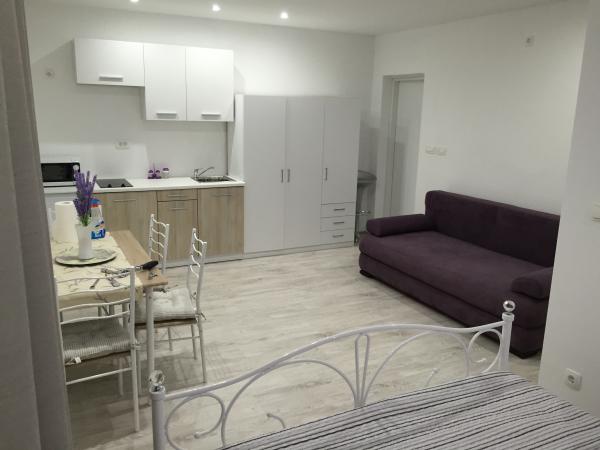 Teljesen bútorozott lakás a földszinten, a tenger mellett. Úgy tervezték, hogy maximum 6 fő. Ez áll 1 hálószoba egy franciaággyal és egy kanapéval, nagy fürdőszoba és a nappali. A tágas nappaliban 2 ágy maximum 4 fő részére. Az apartman található, 10 méterre a tengertől, és saját nagy terasszal és kerti grillezővel használatát, és egy fedett parkoló. A lakás légkondicionált és kényelmes, TV-vel, WIFI-vel és mosogatógéppel. A különlegessége ez a lakás a helyét egy különösen csendes környéken, körülvéve tenger és a természet, amely kiválóan alkalmas mind a fiatalok, mind a gyermekes családok és érett emberek, akik szeretnék élvezni a jól megérdemelt pihenés.
