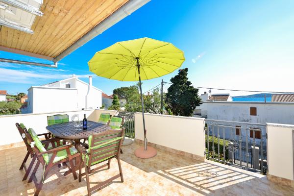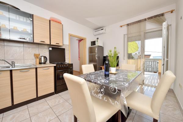 Teljesen felszerelt, modern apartman egy csendes részén a dátumok, található, a második sorban a mora.Apartman található, 30 méterre a tengertől és 80 méterre a kavicsos strandtól ingyenes internet, műholdas TV, légkondicionáló, TV, tengerre néző terasz, grill , parkoló, apartman 2 +2 +4 és 6 mosogatógép és mosógép