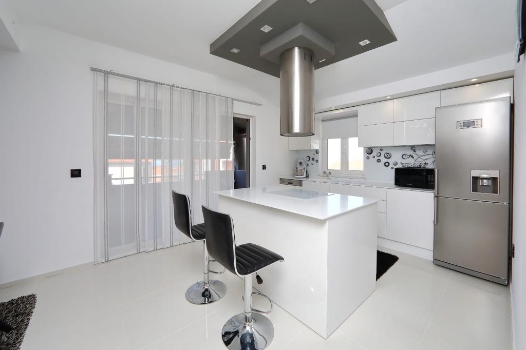 Luxusan berendezett, három hálószobás Neli apartman, három hálószobával, a tenger közelében található, Bibinje városában. A lakás teljesen felszerelt, három hálószobával, két fürdőszobával, konyhával és minden eszközzel, nagy hűtőszekrénnyel fagyasztóval, sütővel, vízforralóval, kávéfőzővel, mosogatógéppel ... az apartmannak nagy terasza van, kilátással a tengerre és a szigetekre, wifi, műholdas TV, légkondicionáló és parkolás a ház előtt. Közel üzletek, étterem központ és buszmegálló közelében
