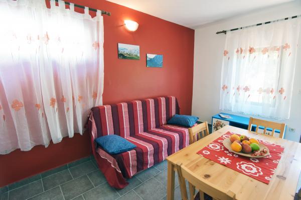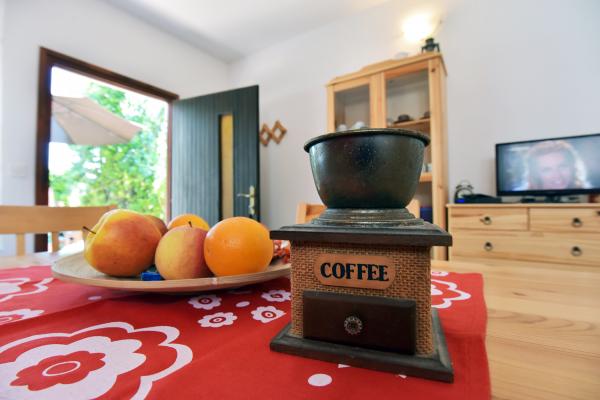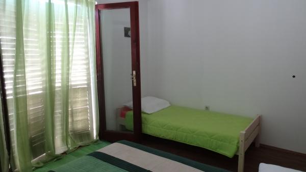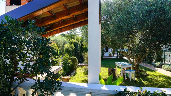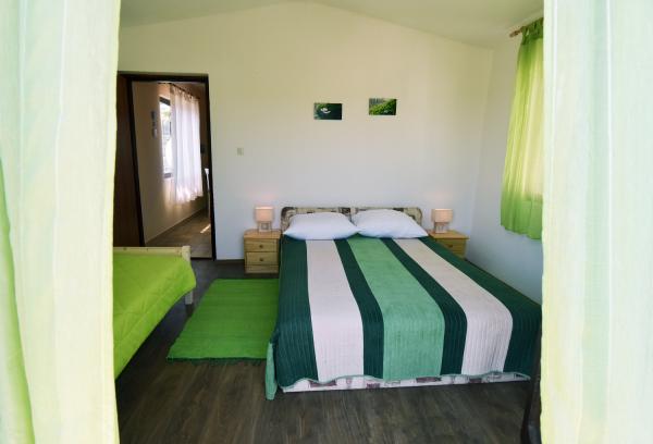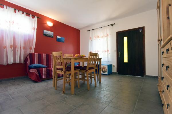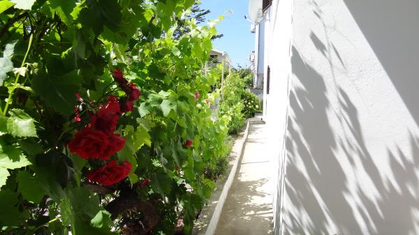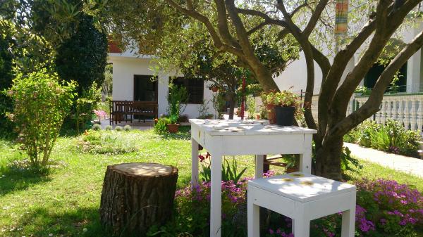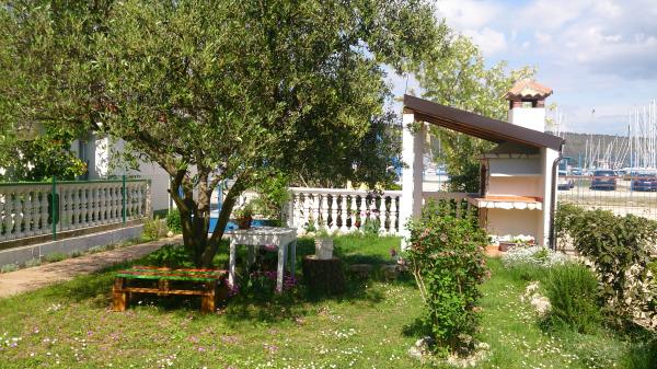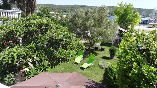 Kicsi, kényelmes ház egy csendes mediterrán kerttel és kilátással a kikötőre Dalmáciában. A földszinten étkező és kis konyha, egy szoba, fürdőszoba és WC-vel. A déli oldalon a kis kertben pálmafák, egy lépcső vezet az első emeleten két hálószoba (1 légkondicionált), egy ágy, íróasztal, szekrények, fürdőszoba és WC-vel. Erkély nyitott a kertben. A tágas teraszon kívül a bejárat a ház egy kerti bútorok minőségű fa és egy nagy esernyő. Parkosított füves, egy kis olajfa és nešpulom. Alacsony mediterrán növények körül a területet napozóágyak, kerti zuhany, és külön grillező jelölőnégyzetet. Elöl egy privát parkoló 3 autó. A ház teljesen áll a vendégek rendelkezésére. 5 perc séta a gyönyörű homokos tengerparton (strand bár, klub búvárkodás, tengeri robogó kölcsönzés, nagy fagylalt, röplabdapálya, strand székek, zuhanyzók, parkolás)
