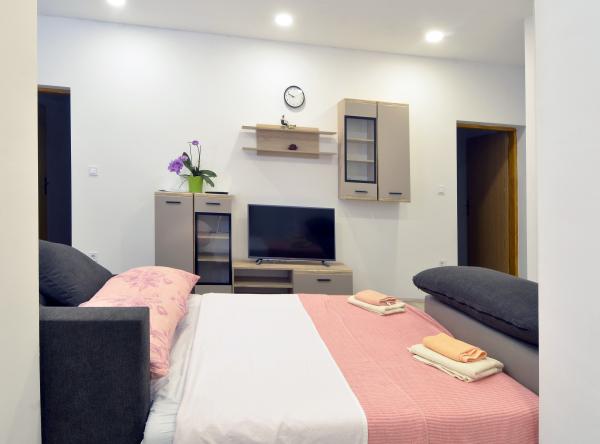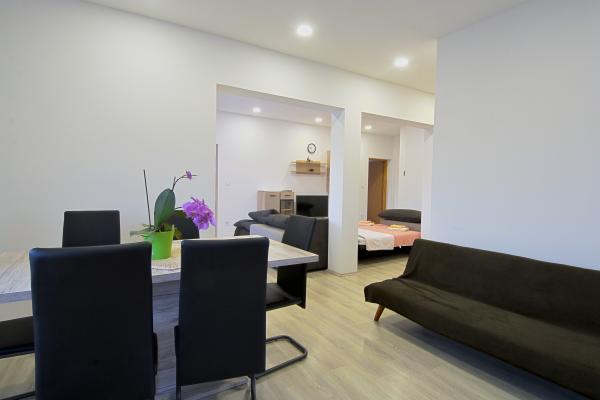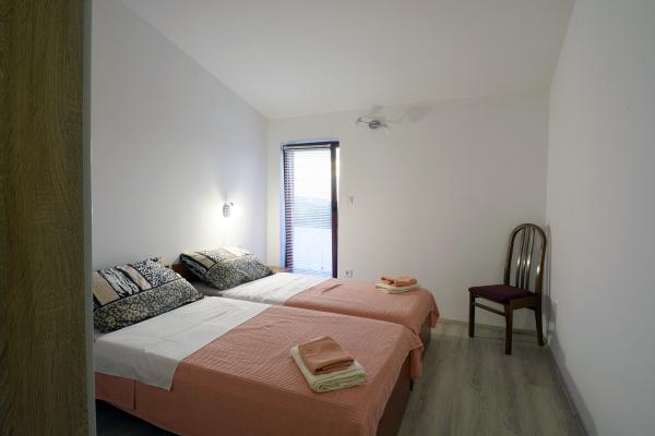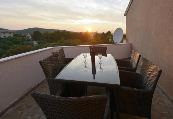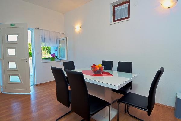 Apartman Dalmácia - Bilice, újonnan berendezett és teljesen felszerelt, 40 m2 a földszinten és 70 m2 az első emeleten, nagy kerttel és medencével. Az apartmanok egy csendes helyen Slavica - Bilice közelében Sibenik, Prokljan tó közelében. Ideális gyermekek és emberek számára, akik békét, csendet és pihenést kívánnak, valamint a két nemzeti park Krka és a Kornati közelében. A ház 5 percnyi autóútra található a strandtól, 10 percre Sibenik központjától.