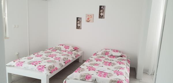 A Prokljansko-tó (öböl) partján három teljesen berendezett apartmant bérelünk, összesen 12 fő részére. A létesítmény közel van a strandhoz, játszótér kávézók, éttermek és mini piacok számára. A Krka és a Kornati Nemzeti Park is élvezhető. Az 1-es és 2-es apartman 8 fő részére, egy teljesen felszerelt, családi ház emeletén található, mindegyikben egy hálószoba franciaággyal és egy tágas nappali két pótággyal két fő részére, konyha, fürdőszoba és terasz. A 3-as apartman 4 fő részére, egy családi ház második emeletén található, teljesen felszerelt, és egy szoba egy franciaággyal és a másik két pótággyal két fő részére, konyha, fürdőszoba és tágas terasz. Az apartmanok saját bekerített parkolóval rendelkeznek. Minden szállás légkondicionált, mosógéppel és mosogatógéppel felszerelt, és WiFi-vel rendelkezik.