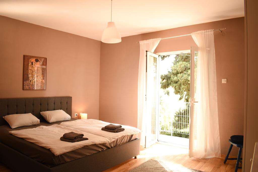 Bútorozott apartman az első emeleten, külön bejárattal Biogradban, a Bošana környékén, mindössze 150 méterre a strandtól és a szolgáltatásoktól, 300 méterre a bolttól és tíz perc könnyű sétára a központtól. Az apartmanban két hálószoba található franciaággyal (180x200 és 160x200), egy konyha étkezővel, egy kis nappali és egy erkély, valamint ingyenes parkolási lehetőség az udvarban egy jármű számára. A ház egy olyan udvarban található, amely nem közvetlenül az úton található, így a csend és a nyugalom biztosított. Két kutya és egy macska él a háztartásban, külön az apartmantól, ezért nem ajánlom a nálunk való szállást olyan vendégeknek, akik intoleranciában vagy állatallergiában szenvednek. Háziállataik kérésre, felár ellenében elszállásolhatók, és minden egyéb díj benne van az árban, további információkért állok rendelkezésére.