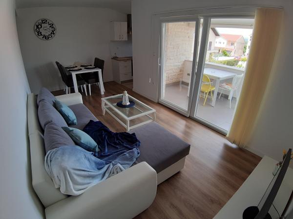 Teljesen felszerelt, modern apartman egy csendes környéken Biograd a Moru.Objekt egy tágas kerttel, fedett parkoló és garázs, ideális gyermekes családok, hanem az emberek, akik a béke, tiszta víz és gyönyörű strandok.