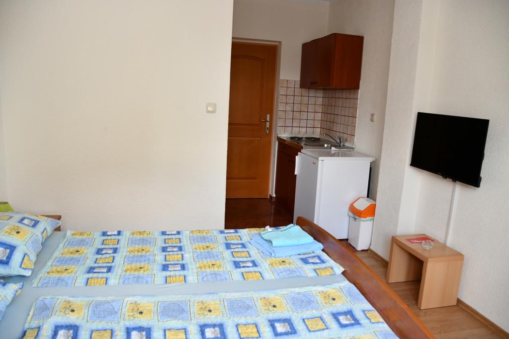 Az apartmanok a város csendes részén találhatók, 10 perc sétára a legközelebbi strandtól, étteremtől és üzlettől. Az udvar és a teraszok kellemesen berendezettek a társasági élethez, kültéri konyhával/grillezéshez. Az apartmanok egyszerűen berendezettek, légkondicionálóval, TV-vel és Wi-Fi-vel felszereltek. Minden apartmanban található egy hálószoba saját fürdőszobával, nappali, teljesen felszerelt konyha és egy erkély a pihenéshez. Barátságos házigazdák fogadják Önt, akik tárt karokkal fogadják, és minden kérésére vagy kérdésére készséggel válaszolnak. Házigazdáink folyékonyan beszélnek németül és horvátul. Ajánlatunk felejthetetlen élménnyé teszi nyaralását egy igazi mediterrán hangulatban. Üdvözöljük!