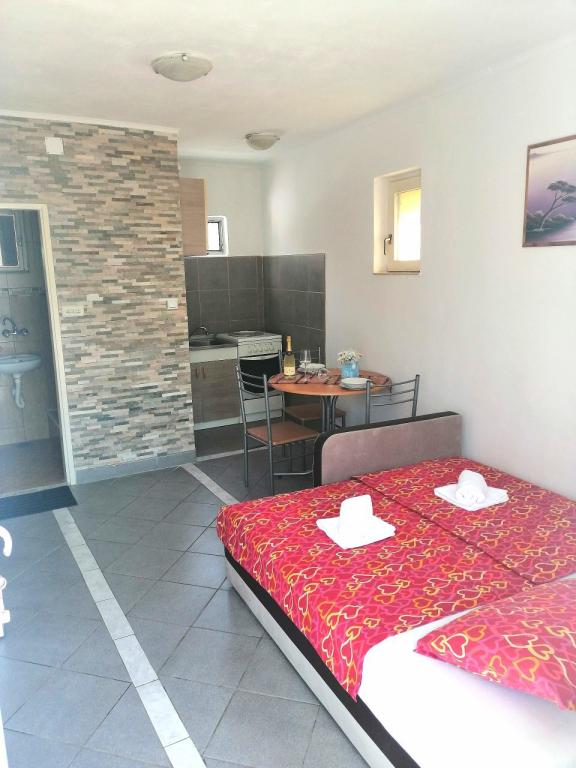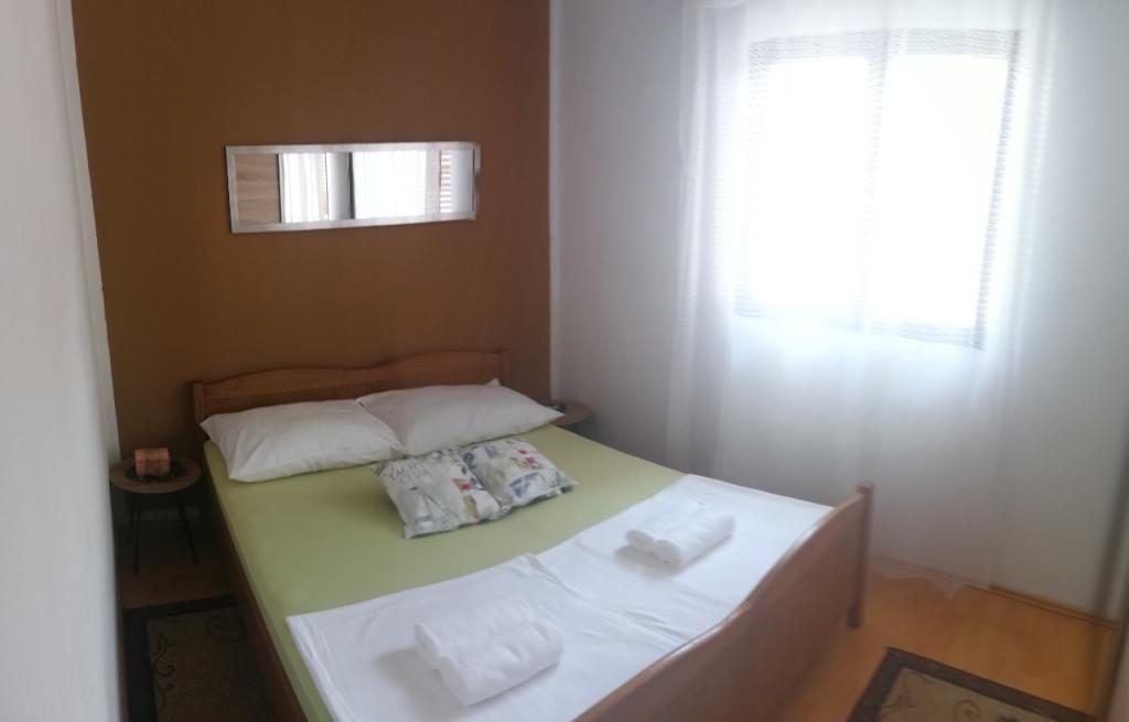 Apartman három hálószobával, konyhával, WC-vel és előszobával, a város csendes részén, a fő homokos Soline strand felett, 10 perc sétára található. Az apartman a földszinten található, nagy udvarral, amely ideális a gyermekek számára és egy grillezővel a felnőttek számára. Ingyenes parkolási lehetőség biztosított közvetlenül az apartman előtt. Ideális hely a kikapcsolódásra.