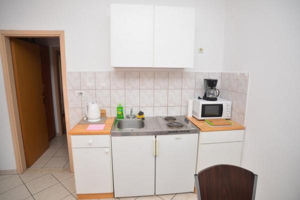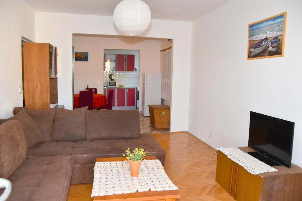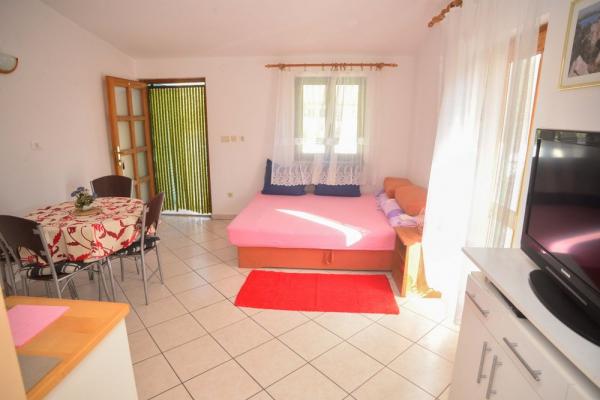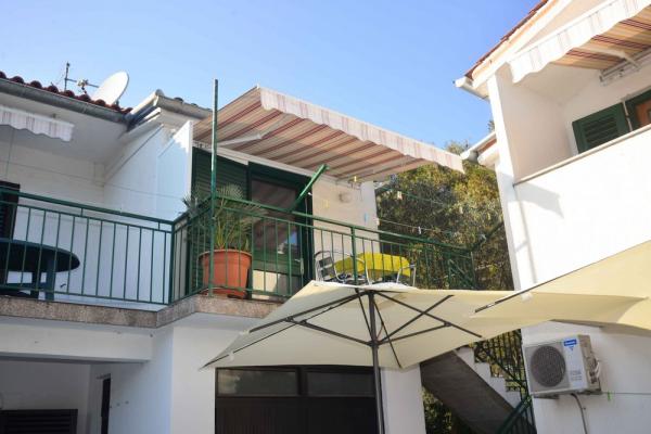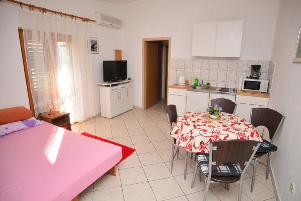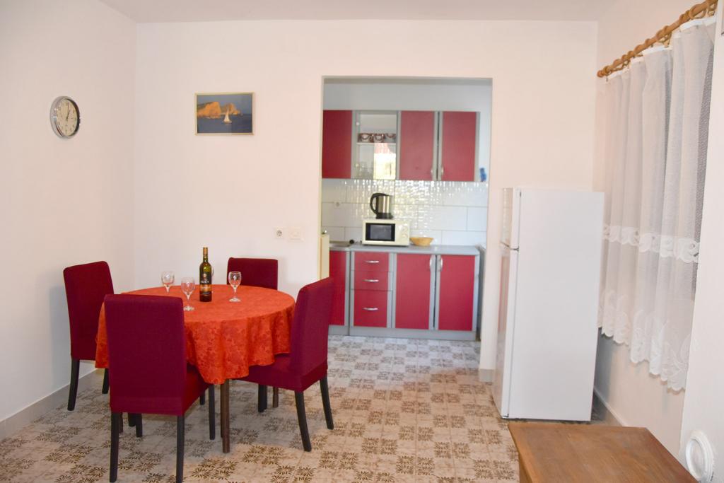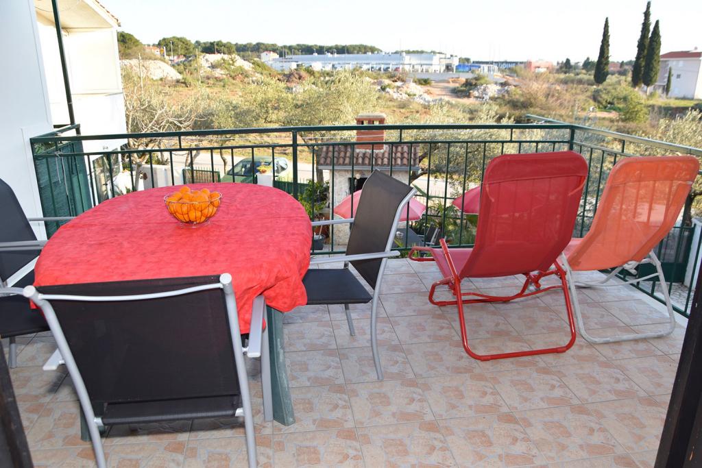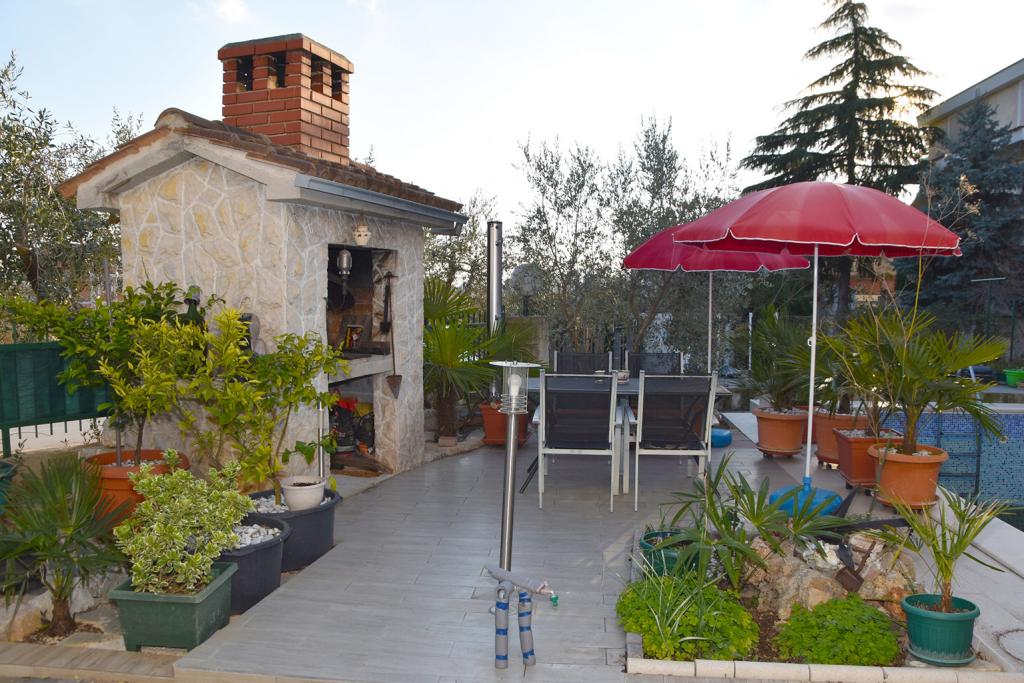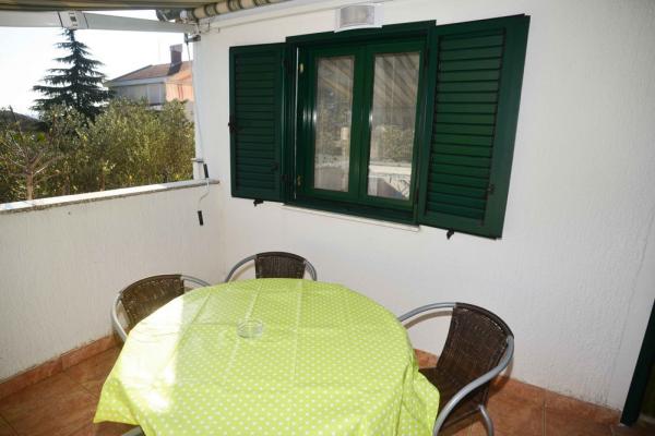 Mi kiadó két apartman északnyugati részén Biograd, teljesen felszerelt medencével, két és négy ember a strand közelében Bosana, dőlve egy fenyőerdő.