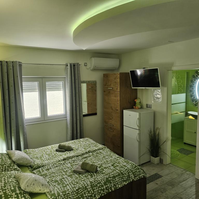 BIOGRAD NA MORU kiadó újonnan felújított lakások, melyekben szoba, konyha, fürdőszoba, Wi-fi, tv, légkondi található Belváros Pláza 150m Bolt, posta, orvos, gyógyszertár 20-50m Buszpályaudvar 50m