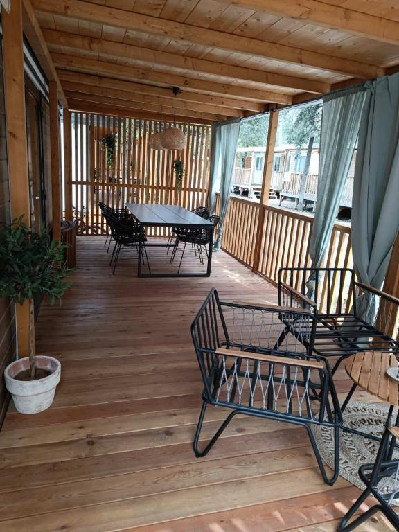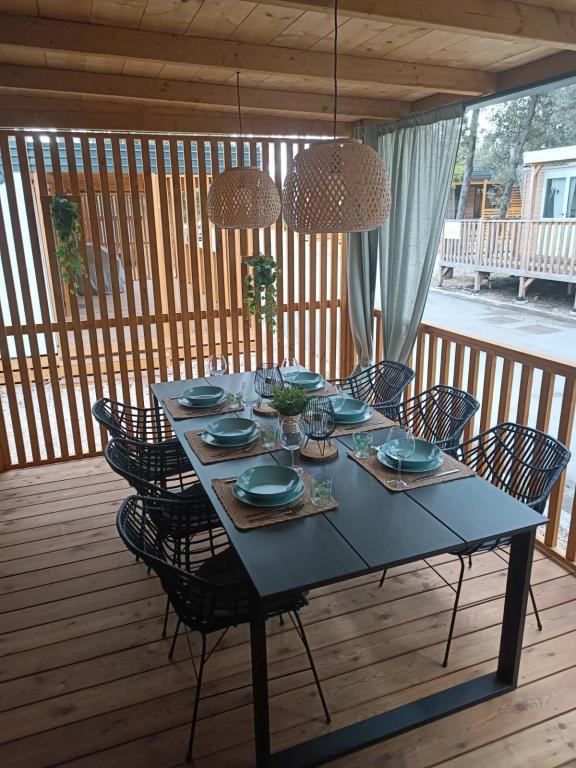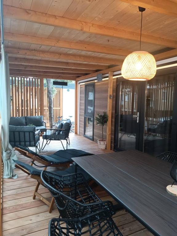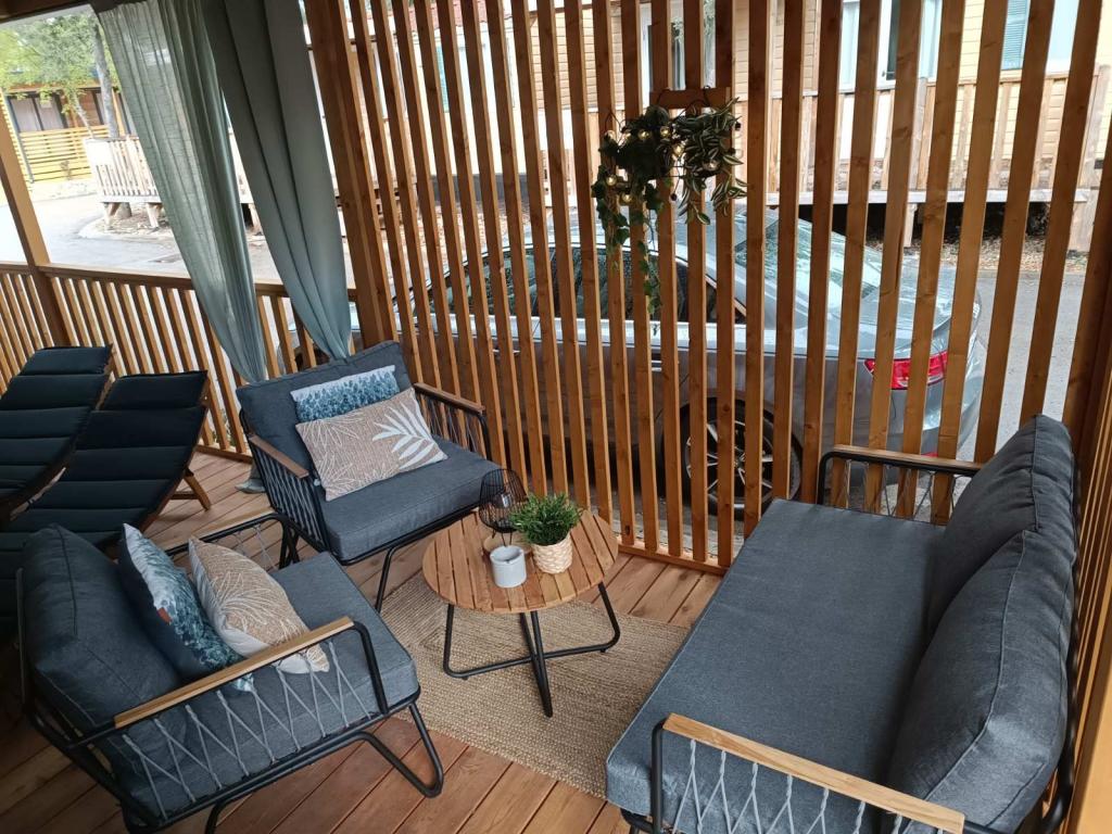 A Soline kemping csendes részén, egy fenyveserdőben található modern InnMare 1 mobilház tökéletes hely egy családi nyaraláshoz. 32 m2-es alapterületével egy franciaággyal ellátott hálószobából, egy két egyszemélyes ággyal ellátott hálószobából, egy kanapéággyal (1-2 fő részére) ellátott nappaliból, két különálló fürdőszobából WC-vel, egy 32 m2-es teraszból, egy kis udvarból és egy parkolóhelyből áll. Az ingatlan teljesen berendezett, a konyhában az alapfelszereltség mellett mikrohullámú sütő, vízforraló és eszpresszógép is található. A teraszon egy további étkezőasztal, nyugágyak találhatók a tökéletes szunyókáláshoz, fenyőfák illatával fűszerezve, a szálláshely mellett pedig egy grillező is található, amely szintén a vendégek által használható felszereltség szerves részét képezi. Az ingatlan mellett egy autó számára parkolóhely is található, amelyet a vendégek használhatnak. Üdvözöljük az InnMare 1-ben, egy modern szálláshelyen, amely békés és idilli családi nyaralást kínál egy csendes fenyveserdőben, a tenger, a strandok és Biograd na moru könnyű elérhetőségével!