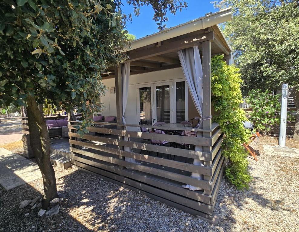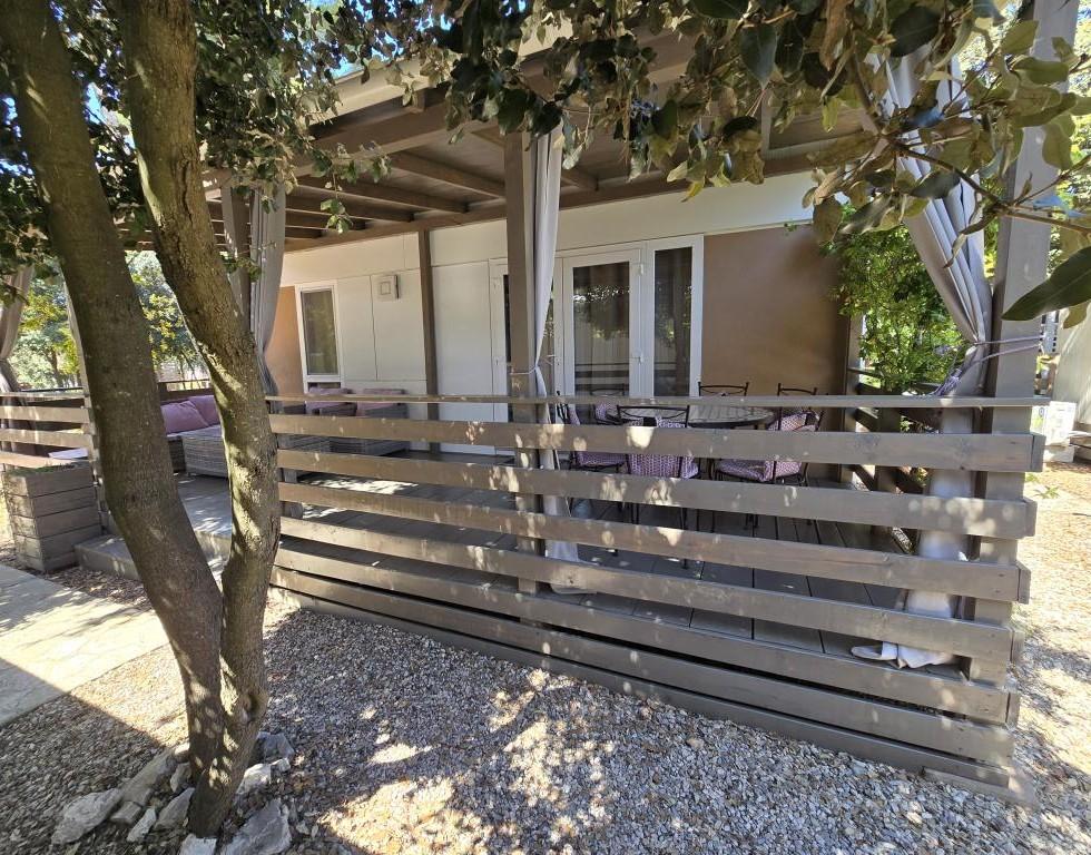 Teljesen felszerelt, 30 m2-es mobilház nagy terasszal és parkolóhellyel. A Soline kemping egy csendesebb részén található, nem messze az éttermek, kávézók és a strand zajától, mégis elég közel.