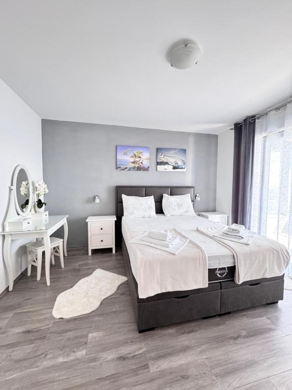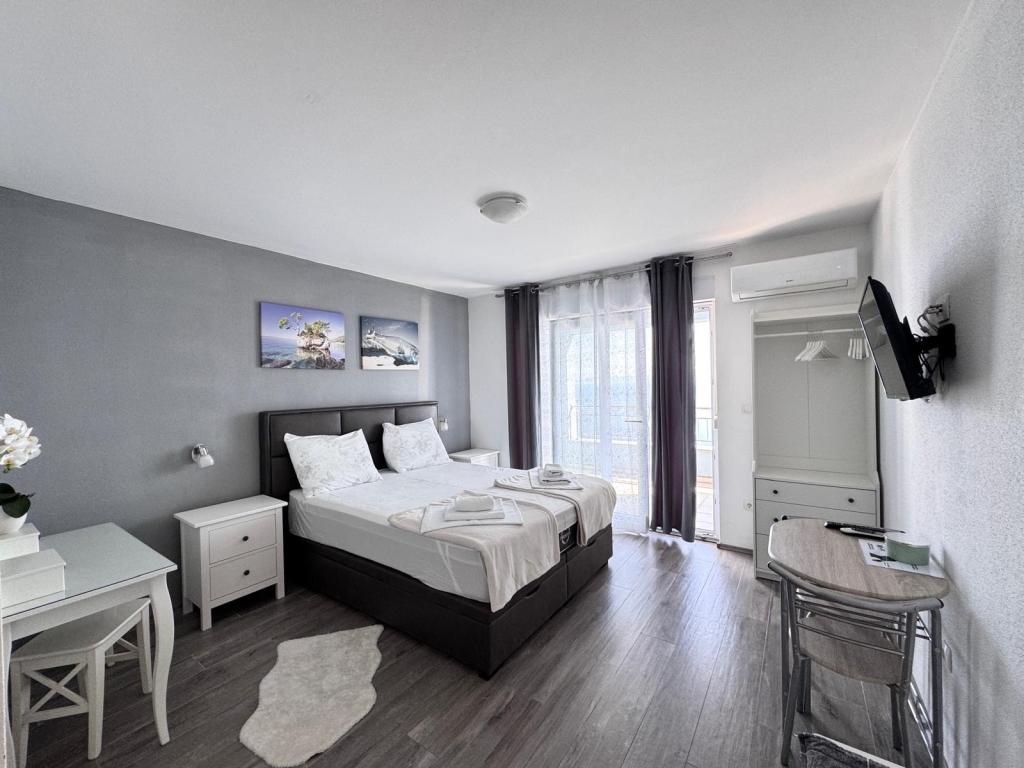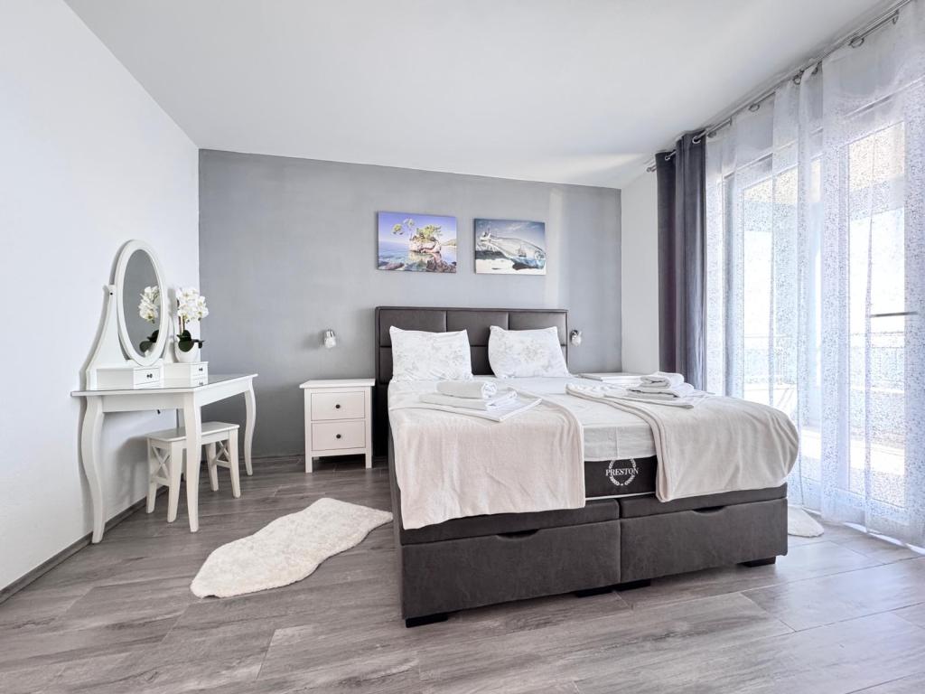VILLA Orada fenyvesekkel körülvéve, kilátással a tengerre és a dalmát szigetek csendes öbölben Podcrkavlje Donja Brela. 150 méterre a gyönyörű strandok, ahol mindenki megtalálja a neki valót, éttermek, kávézók, koktél bár, ajándéktárgyak és tárgyak a parton vízi sportok. Az apartman található, mindössze 10 percre a mini piac és az utazási irodák, ami viszont kínál kalandos rafting a Cetina folyón, közel a város, túrázás a hegy lejtőjén és egynapos kirándulások hajóval a közeli dalmát szigetekre. Brela egyedülálló a maga kristálytiszta kék tenger, gyönyörű strandok és öblök, és éppen olyan, mint egy ideális hely a nyaralás és barátságos házigazdák gondoskodik arról, hogy jól érzik magukat, és elégedett. Üdvözlünk!