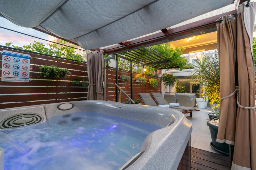 A Villa Tomaš Brela csendes környéken található, 2 km-re Brela központjától. Az 1-es apartman 6 + 2 fő részére, a kis ház, azaz a 2-es apartman pedig 2 fő részére alkalmas. Az apartmanok teljesen felszereltek, így gondtalanul élvezheti nyaralását. Az 1-es apartman egy kétszintes apartman, 4 hálószobával, 2 konyhával, 2 fürdőszobával és egy terasszal. A 2-es apartmanban konyha, hálószoba, fürdőszoba és erkély található. A Villa Tomaš vendégei rendelkezésére áll egy medence és egy pezsgőfürdő. Ingyenes parkolási lehetőség áll rendelkezésre a szálláshely mellett. A Podcrkavlje strand 200 méterre található az apartmantól, akárcsak az első étterem és a strandbár.