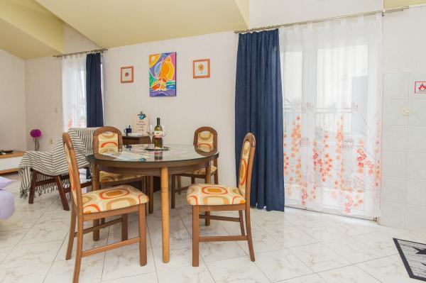A jól karbantartott, tágas apartman csak egy rövid sétára van a strandtól, pékségek, éttermek, üzletek ... A parkolás ingyenes az udvaron, az árnyékban, a bejáratnál külön-külön, az apartman saját erkéllyel, külön hálószobával, konyha edényekkel, a nappaliban széles ágy található két személy részére, erkély ... Légkondicionáló, műholdas TV, korlátlan internet-hozzáférés ingyenes. . Ágynemű és törölköző biztosított a lakásban. Gyere és élvezze a nyaralását velünk .... . . .