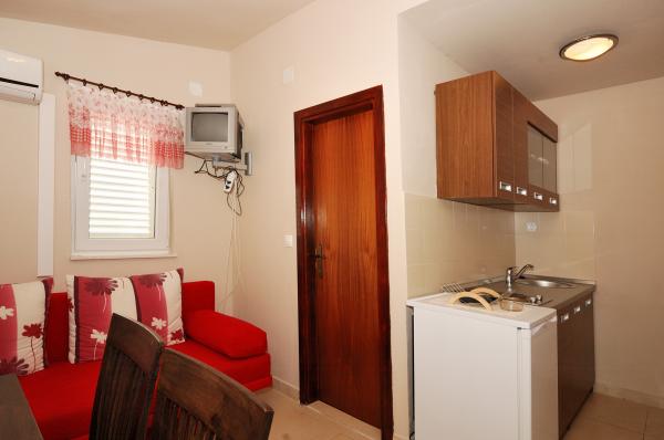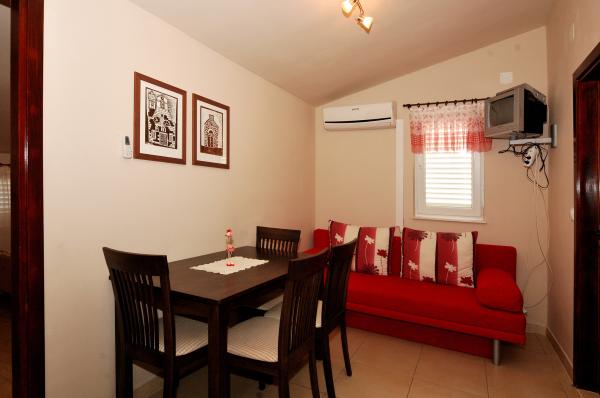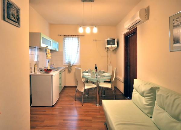 Kellemes, felújított apartman található a legelején Brodarica, mindössze néhány perc sétára a strandtól Brodarica. Nem messze a lakásban van a Krka Nemzeti Park és a sziget Krapanj, a legkisebb sziget a Földközi hosszú története spužarstva. Stúdió apartmanok egy szobába, ahol van egy konyha, két ágy, külön fürdőszoba, erkély (a kivétel: A5). Az apartmanok 4 személy befogadására alkalmas 2 hálószoba, fürdőszoba, konyha-nappali kanapéval, erkély. Az apartmanok alkalmasak 2-4 fő részére, amely a konyha-nappali kanapéval, kétágyas hálószoba, fürdőszoba, erkély (a kivétel A8). Minden apartman légkondicionált. A vendégek használhatják a TV, műholdas, és a legtöbb egység erkélyes, tengerre néző. A vendégek használhatják a grill, és parkolóhelyet.