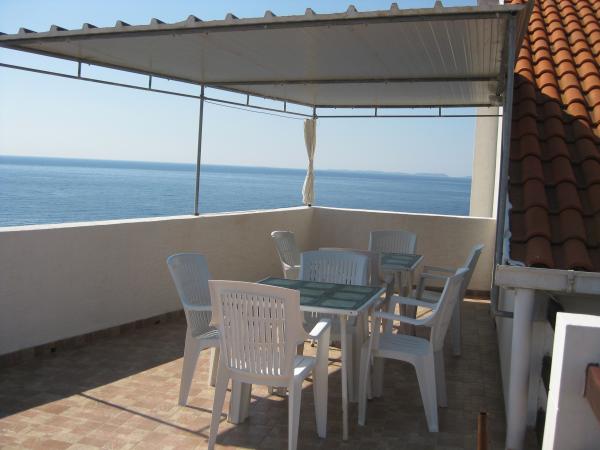 Lakossági adót az az ár tartalmazza.Egyéni beton strand sziklás partján, úszómedencés Morks víz, nagy terasz nyugágyakkal és egy pergola, grill, parkoló. Törölközők és az ágynemű is rendelkezésre áll.