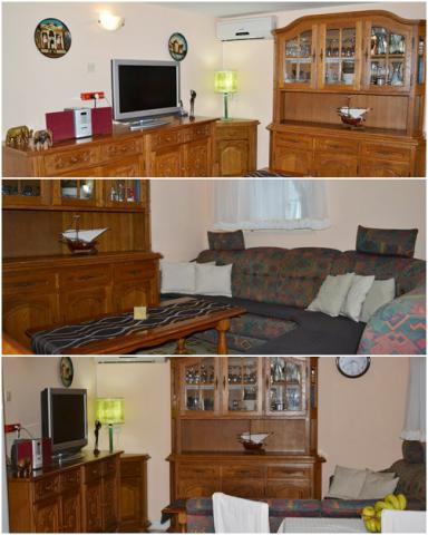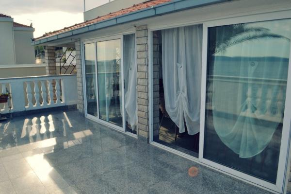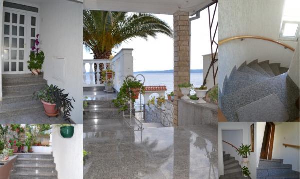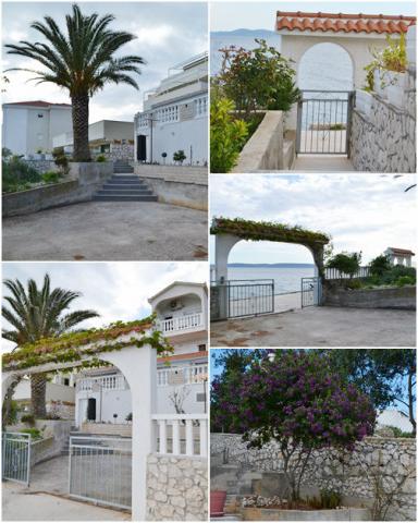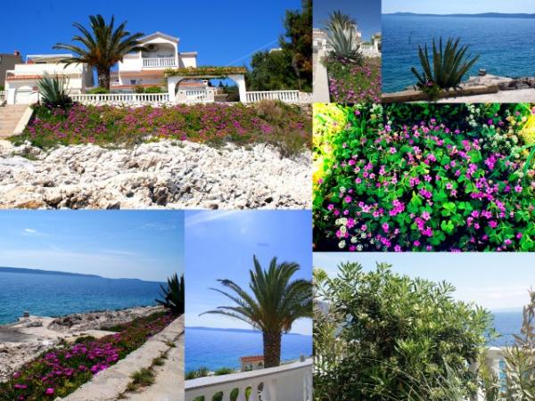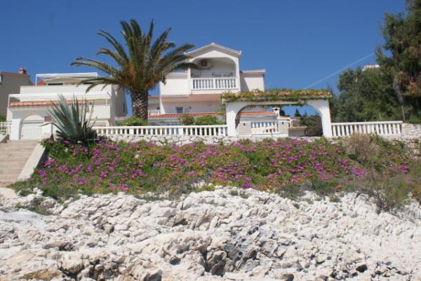 Palma apartmanok találhatók Ciovo szigetén, 3 km-re az egyik legszebb város az Adriai-tenger partján város Trogir, amely kapcsolatban van a híd. Teljesen berendezett apartmanok egy családi ház, sok zöld és mediterrán növények, a tenger egy privát strand, távol a forgalom és a zaj, és gyönyörű kilátás nyílik a tengerre és a szigetekre. A lakás az első emeleten (60 m2) egy hálószoba, konyha, étkező, nappali dupla ággyal, fürdőszoba zuhanyzóval és mosógéppel és erkéllyel, kilátással a tengerre. Földszinti apartman (120 m2), három hálószoba, zuhanyzós fürdőszoba, a konyha (mosogatógép), nappali és egy nagy, félig zárt terasz (30 m2), étkező és egy kanapéval és kilátással a tengerre. Apartmanok teljes berendezések (légkondicionálás, internet, műholdas, mosógép és mosogatógép). A vendégek használhatják a grill, kerti zuhany és saját parkoló.