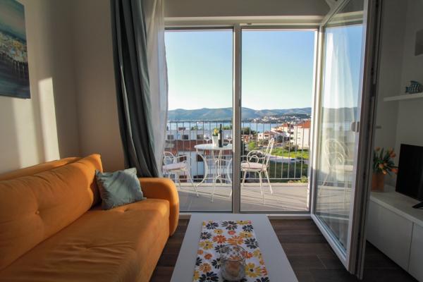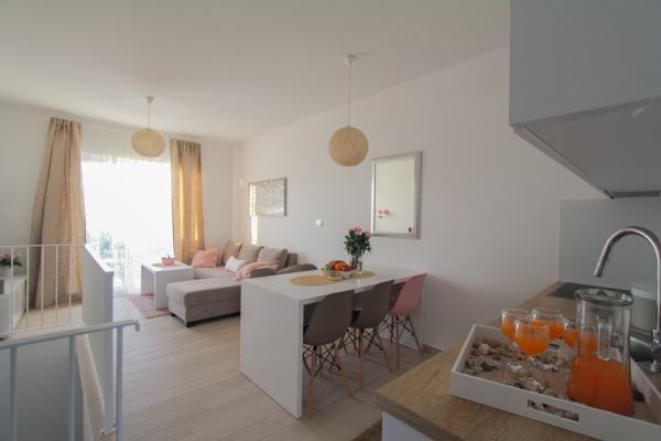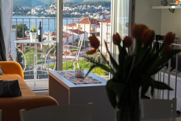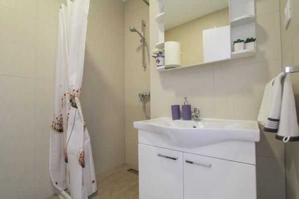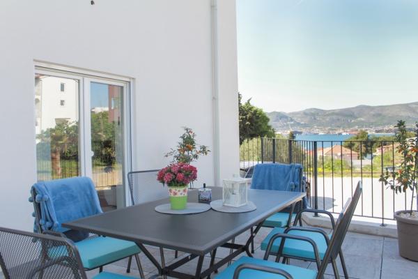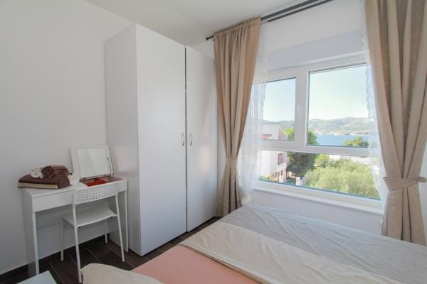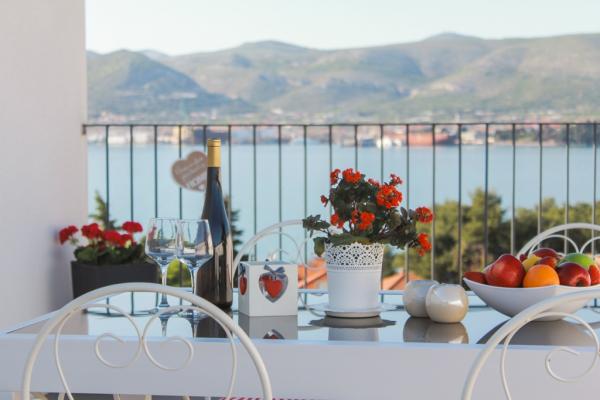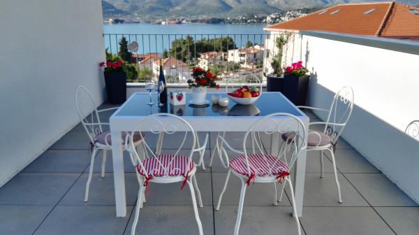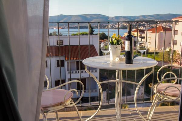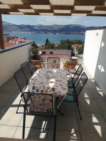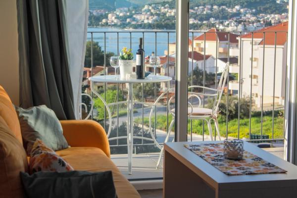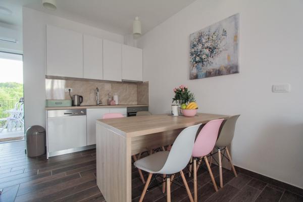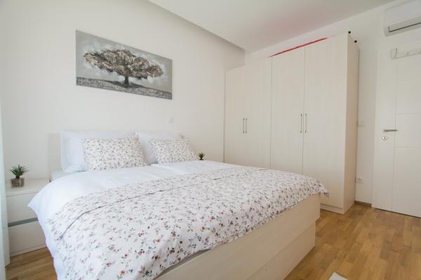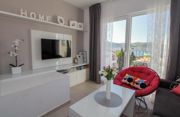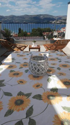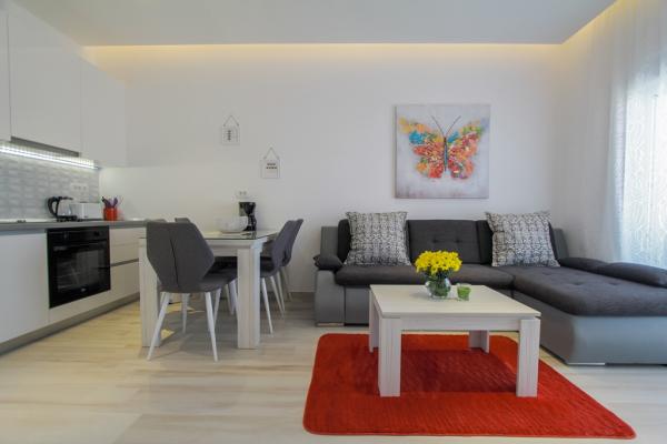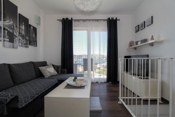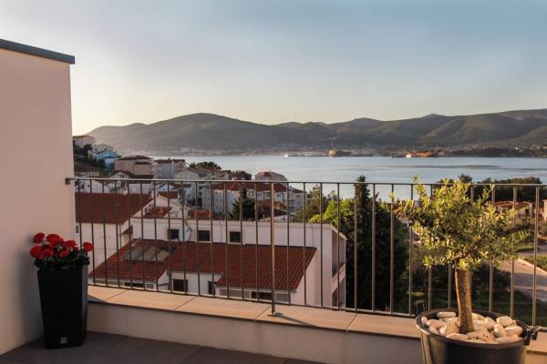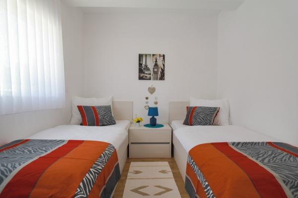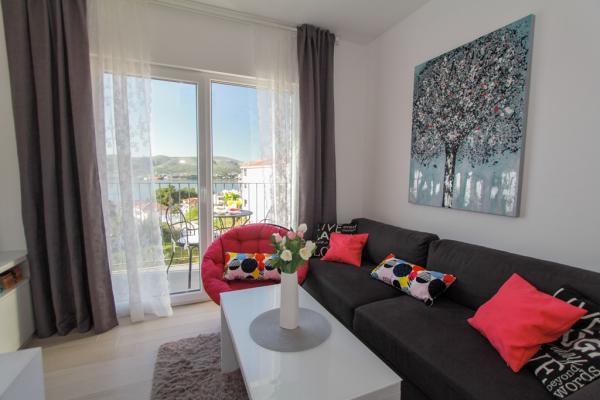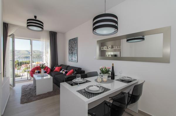 Az új két hálószobás apartmanok Okrug Gornji csendes részén találhatók, mindössze 5 perc sétára a strandtól az Okruška-öbölben és 10 perc sétára Tatinje strandjától. . Az apartmanok modern berendezésűek, teljesen felszerelt konyhával. A hat emeletes lakosztályok mindegyike saját, 25 m2-es tetőterasszal rendelkezik, ahonnan gyönyörű kilátás nyílik a tengerre, valamint grillező és ülőgarnitúra található. A földszinten két apartman tengerre néző terasszal, grillezővel és ülőbútorokkal rendelkezik. Az épület előtt egy 50 m2-es sós vízzel felszerelt medence található. Májusban és októberben a medencében a víz felmelegszik. Beplatan wifi. Az épület udvarán egy parkolóhely található minden apartmanhoz.