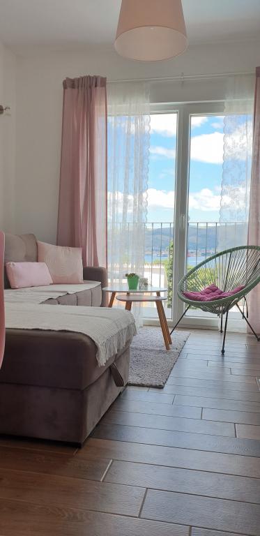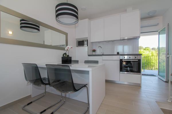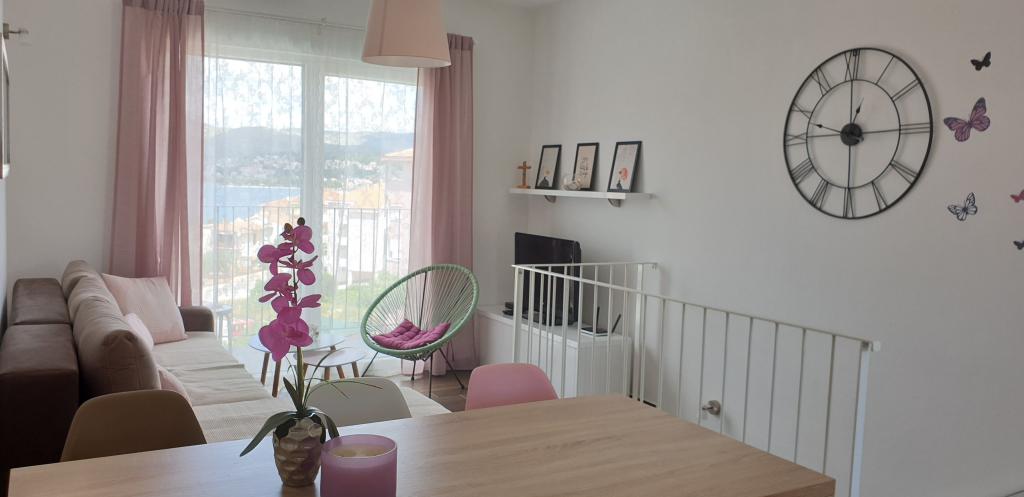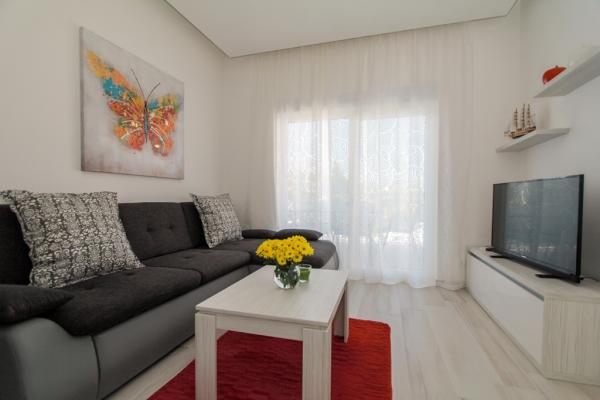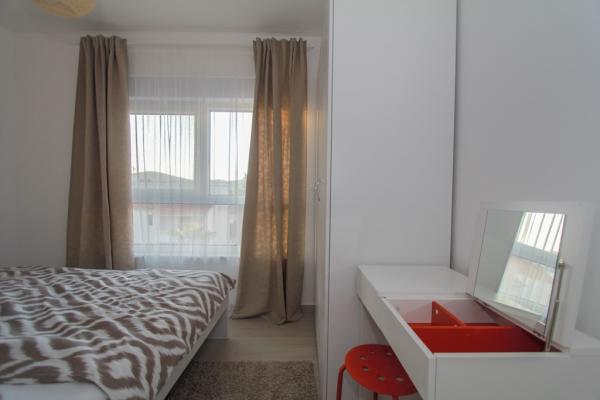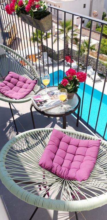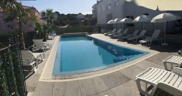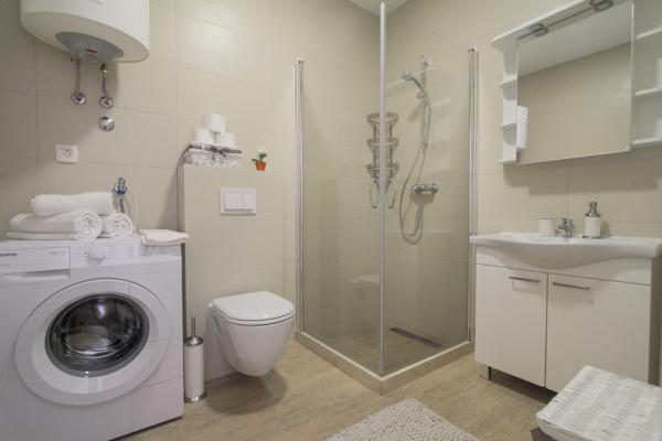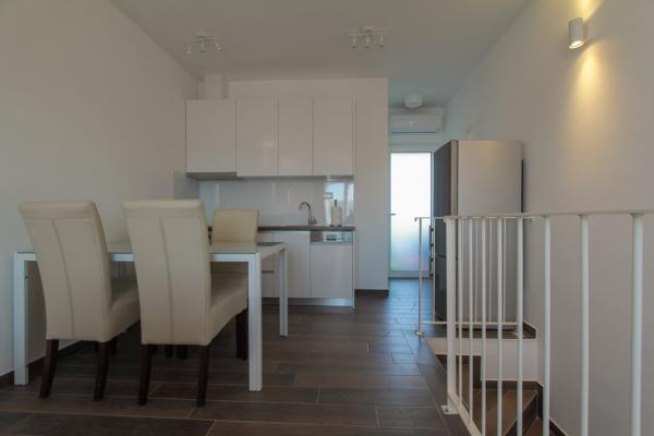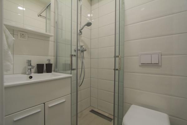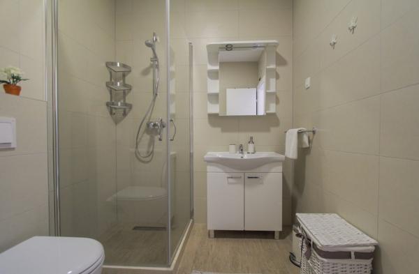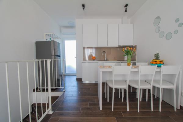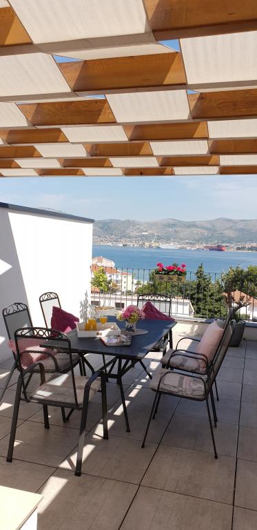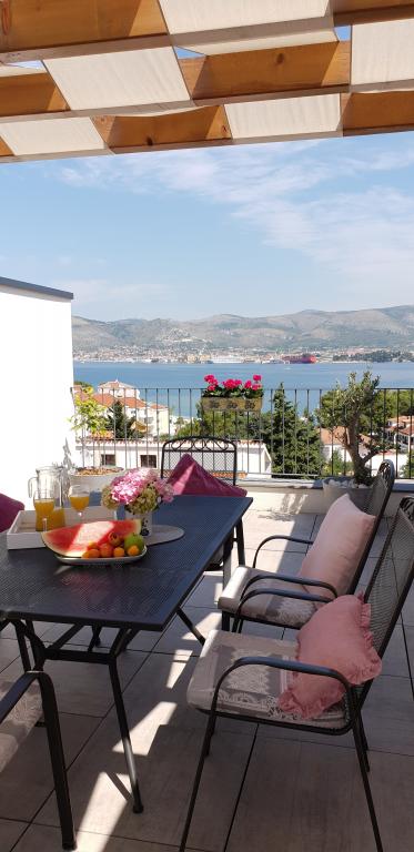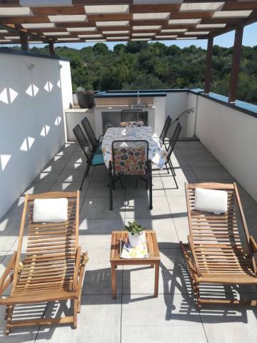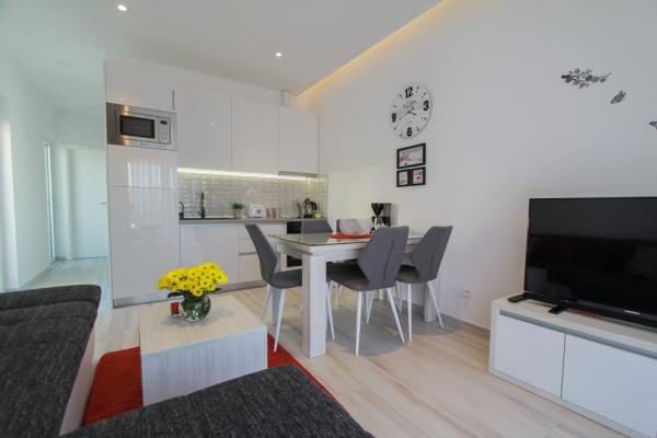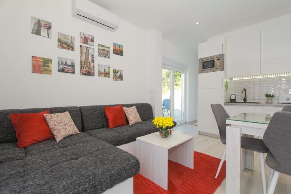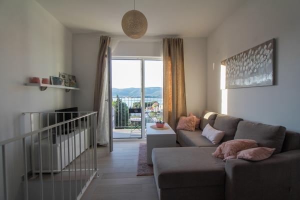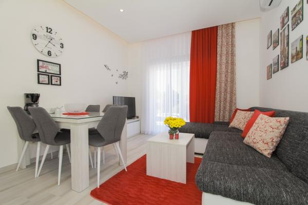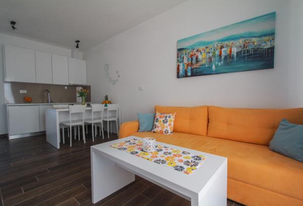 Az új két hálószobás apartmanok Okrug Gornji csendes részén találhatók, mindössze 5 perc sétára a strandtól az Okruška-öbölben és 10 perc sétára Tatinje strandjától. . Az apartmanok modern berendezésűek, teljesen felszerelt konyhával. A hat emeletes lakosztályok mindegyike saját, 25 m2-es tetőterasszal rendelkezik, ahonnan gyönyörű kilátás nyílik a tengerre, valamint grillező és ülőgarnitúra található. A földszinten két apartman tengerre néző terasszal, grillezővel és ülőbútorokkal rendelkezik. Az épület előtt egy 50 m2-es sós vízzel felszerelt medence található. Májusban és októberben a medencében a víz felmelegszik. Beplatan wifi. Az épület udvarán egy parkolóhely található minden apartmanhoz.