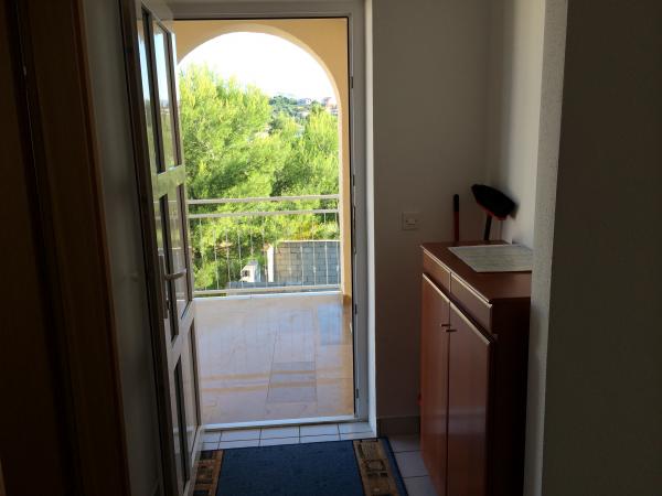 Az apartmanok 400 méterre a strandtól, csendes részén a sziget. A konyha jól felszerelt, mosogatógép, hűtő, tűzhely sütővel és elektromos vízforralóval. A fürdőszobában egy mosógép és egy vasaló és vasalódeszka. A lakáshoz két terasz, egy kilátással a tengerre és a többi erdőre néző.