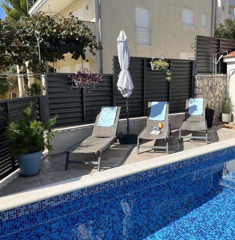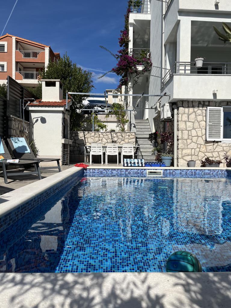 Egy hetet töltöttünk egy apartmanban, két felnőtt és három gyerek. Imádtuk a helyet! Nagyszerű apartman, tiszta és friss. Az erkély és a kilátás fantasztikus volt! Naponta használtuk a medencét, és több mint elégedettek voltunk. Néhány este grilleztünk is a medence mellett, és a gyerekek szerint otthonosabb volt, mint egy étterem. A helyszín nagyszerű! Többféle úszási lehetőség van, strandon vagy sziklákon. A legkisebb gyermekünk négyéves, és nem volt gondja elsétálni a különböző helyekre. Egy kicsit a "központban" volt, és egy nagyobb élelmiszerbolt volt, de semmi olyan, ami ésszerű kirándulás nélkül gondnak tűnt volna. Uberrel könnyedén eljutottunk többek között Trogirba. Darko egy csodálatos házigazda, aki sok különböző tippel érkezett, és mindig elérhető volt. Nagyon törődött a jólétünkkel! Visszatérünk.