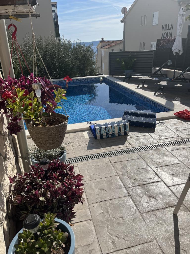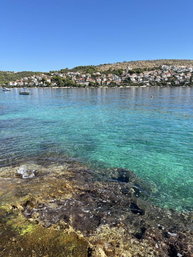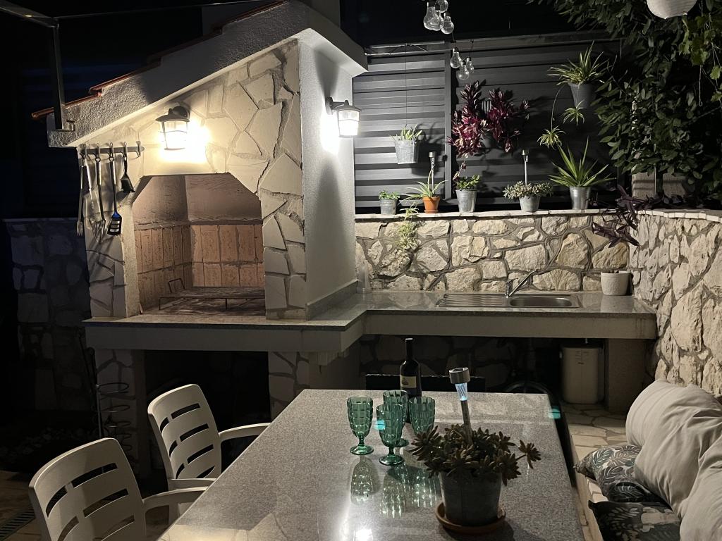 Reggeli séták egy olyan kék tenger mellett, hogy fáj, reggeli az erkélyen, varázslatos kilátással, modern friss fény, szép terasz a medence mellett, ahol többször vacsoráztunk. Sófürdők közvetlenül a ház alatt kis szaunákból/sziklákból. Szép kavicsos strand kb. 250 m-re a háztól, kisebb gyerekeknek tökéletes, a sarkon kis aranyos élelmiszerbolt. Nincsenek paxa napozóágyak vagy Eurodisco a medence mellett, csak élvezni kell. Fantasztikus házigazda, aki nagy türelemmel segít mindenben, a szomszédnak van egy taxi társasága, és elvitt minket, ahová akartunk, repülőjáratokra / onnan, kirándulásokra Trogirba stb. Erősen ajánlott.