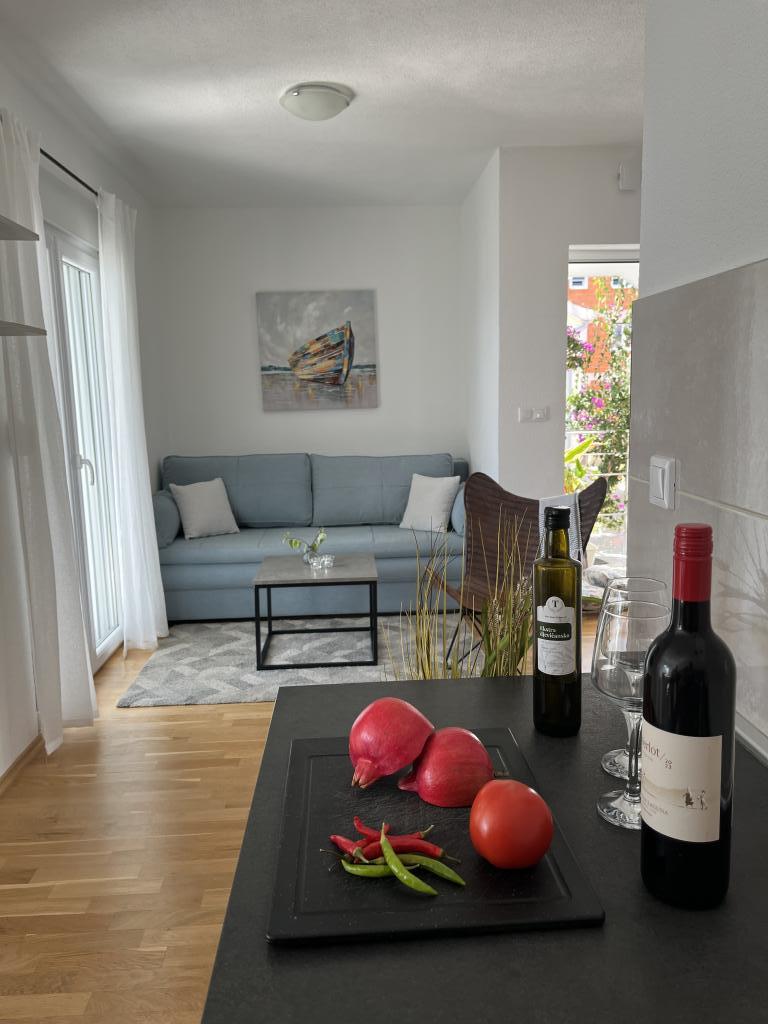 Az apartmanok magas színvonala. Pont olyan, mint a képeken. Tiszta, rendezett, semmi sem hiányzik. Van mosogatógép, mikrohullámú sütő, kávéfőző, mosógép, TV. Grillező, medence és napozóágyak a helyszínen. Nagyon közel a tengerhez. Remek hely rövid és hosszú utazásokhoz, pl. Trogir, Split, Šibenik, Biokovo, Dubrovnik, Mostar... A házigazda nagyon kedves és türelmes.