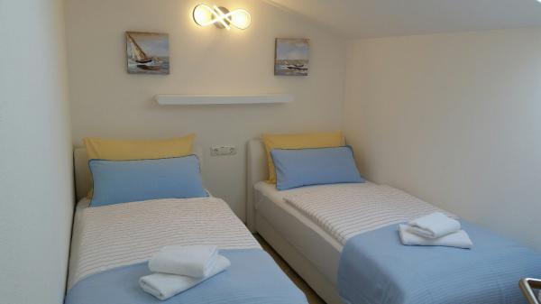 Villa Nikaraoni található a sziget Ciovo Trogir közelében. A modern, teljesen felszerelt lakások az új házban csak 4 apartmannal (földszint, emelet és tetőtér). A házban található egy csendes és napos, sok zöld, a tágas udvar (1000 m2). Az udvaron parkoló és barbecue. Az erkélyek tágasak és kilátással a tengerre. Az apartmanok fel vannak szerelve az új és modern konyha mosogatógéppel, mikrohullámú sütővel, nagy hűtőszekrény, műholdas TV-vel, ingyenes Wi-Fi, mosógép ... Az ár tartalmazza az ágyneműt és törölközőt (nem strand) és a takarítás.