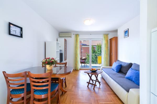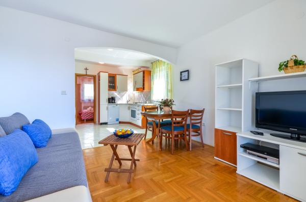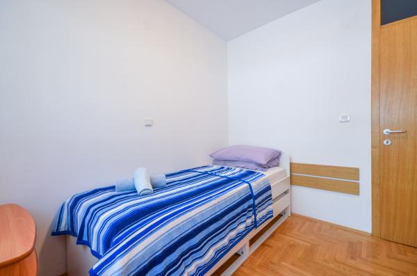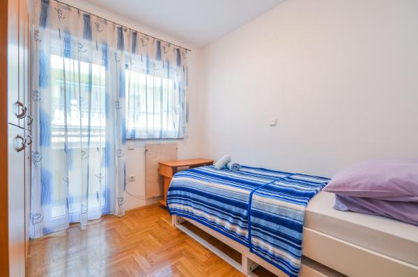 A Valerija apartmanja egy félreeső macskaköves utcában található, az első sorban a tenger felé, a híres Crikvenica homokos strandon. A közelben számos kávézó található, közvetlenül a tenger mellett, valamint rengeteg gyors és lassú ételeket kínáló étterem, az apartman mellett egy kis piac is található, ahol alapvető élelmiszer- és higiéniai kellékek, valamint egy közel 24 órás pékség található. A város központja mintegy 600 m-re, vagy tíz percnyi pihenésre alkalmas. Az apartmanban két különálló hálószoba található, az egyikben egy franciaágy és egy két egyszemélyes ágy. A fürdőszobában zuhanyzó és mosdó található WC-vel. A konyha teljesen felszerelt edényekkel, a hűtőszekrényben fagyasztó található, és van egy vízforraló, sütő, gáztűzhely, mosogatógép és kávéfőző. Ugyanabban a szobában étkezősarok és kétszemélyes kanapé található. Reggelire, vagy egy pohár borral pihentető vacsorára 6 tengerre néző terasz tartozik. Légkondicionálás, TV és wifi.
