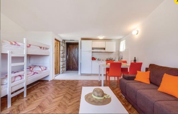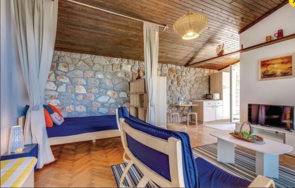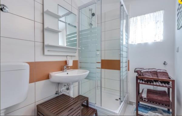 A ház Stella közelében található a strand és a sétány (mindössze 3 perc séta), amely ideális a futáshoz, kerékpározáshoz vagy nyugodt séta a tenger. A ház két épületből áll, smejštena 700 m2-es telken, csendes helyen, kilátással a tengerre, kert tele mediterrán növények (levendula, mirtusz, olíva, babér), és számos terasz (Nap és azokat az árnyékban). Mindkét smejštajne egységeket felújított és teljesen újonnan berendezett március 2017 g. Minden egységnek van egy konyha és fürdőszoba, külön bejárattal, és együttesen és külön terasszal. A kert a ház mögött van egy játszótér homokozóval és asztalitenisz. Kőház (50m2): nappali dupla ággyal füst. 140x200, hálószoba franciaággyal füst. 160x200, konyha, fürdőszoba (kád), nem megy ki két terasz, kilátással a tengerre. A ház (30m2) garzonlakás - nappali kanapéval füst. 140x200, egy emeletes ágy, konyha és fürdőszoba (zuhanyzó).