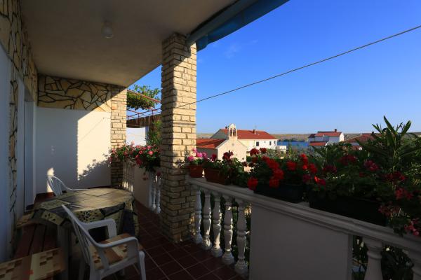 Az apartman található, egy kis faluban Dinjiška a Pag-szigeten. Dinjiska 15 km-re a város. Az apartman található, 50 méterre a tengertől. Az ingyenes parkolást, használja a grill. Az apartman három hálószoba, két fürdőszoba és egy nagy erkély. Klíma kerül felszámolásra további 5 euró.