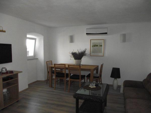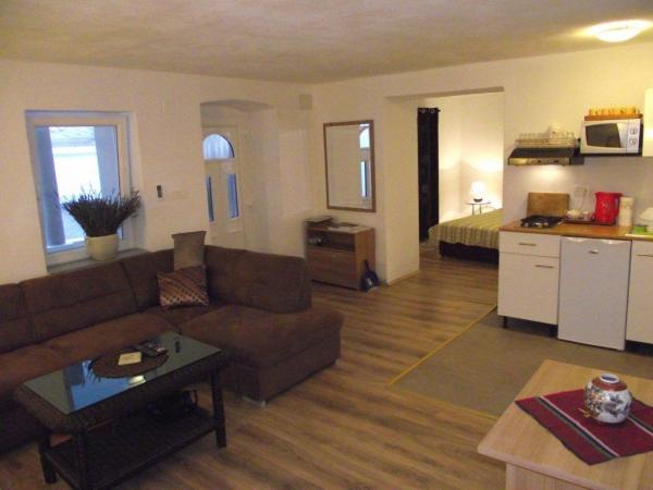 Az apartmanok találhatók egy háromemeletes szecessziós a központ és az első felében a 2012th Mindegy. teljesen felújították. A ház közelében van egy bolt, étterem terasszal és bárral, valamint a galériák, múzeumok és templomok. Parkolás található, mintegy 200 méterre, nem őrzött, nem könyvelhető ingyenes. Kisállat bevihető a korábbi bejelentést. Stúdió apartman található a földszinten, nagysága 40 m2. Elöl egy fedett terasz tartozik, hogy a lakás. A lakás egy nagy hálószoba dupla ággyal, nappali kanapéval 2 fő, fürdőszoba zuhanyzóval és WC-vel. Az hálószoba és nappali laminált fa borítja. A lakás fel van szerelve légkondicionáló (fűtés / hűtés), műholdas TV, széf, konyha. Az 1 és 2 apartman található, amely a második vagy harmadik emeleten kerül be egy nagy napos terasszal. Apartman 1, mérete 40 m2 egy hálószoba, nappali és fürdőszoba. Hálószoba dupla ággyal rendelkezik egy beépített szekrények. A nappaliban található egy kihúzható kanapé két fő részére, konyha és nagy asztal négy székkel. A lakás fel van szerelve légkondicionáló (fűtés / hűtés), műholdas TV, széf .. Apartman 2, alapterület 40 m2-es található, a harmadik emeleten egy hálószoba franciaággyal, nappali