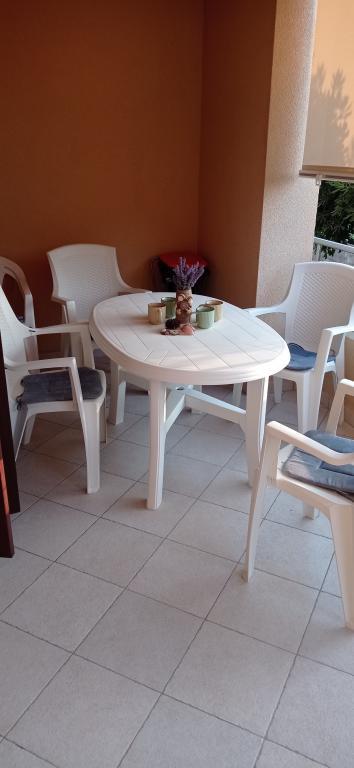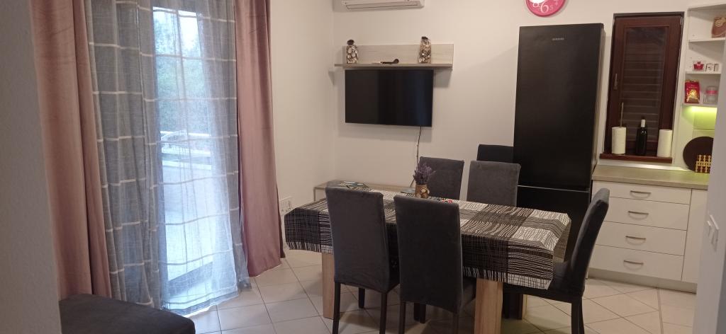 A lakás egy csendes lakóparkban található, egy épület földszintjén. Teljesen felszerelt, mindenféle használható háztartási géppel felszerelt. A létesítmény 250 méterre található az első sziklás strandtól és 2 perc autóútra a városközpont homokos strandjától. A központban található egy bolt, egy étterem, 2 kávézó a strandon és egy templom. Van egy újonnan felújított tengerparti sétány is az apartmanoktól a központig. A sziget ideális a nyári vakációkhoz, mivel ideális kerékpárosoknak, gyaloglásra és futásra a sziget tetején. Sok látnivaló.