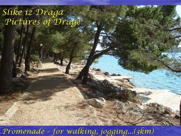 Teljesen és modern berendezésű apartmanok csendes helyen Dolaške Drage található harmadik sor a tengertől. A létesítmény 5 percnyi sétára van a tengertől. A terasz gyönyörű kilátást nyújt a tengerbe. A tenger mellett egy fenyőerdő és egy sétány található. Közel a Kornati nemzeti parkhoz, a Krka nemzeti parkhoz és a Vranjsko jezero parkhoz. A Vranjsko jezero mellett 50 km hosszú kerékpárút található, amely nagyon érdekes a kerékpárosok kedvelői számára. A közvetlen szomszédságában (5 km) található a legnagyobb szórakoztató park, a Fun Park Biograd.