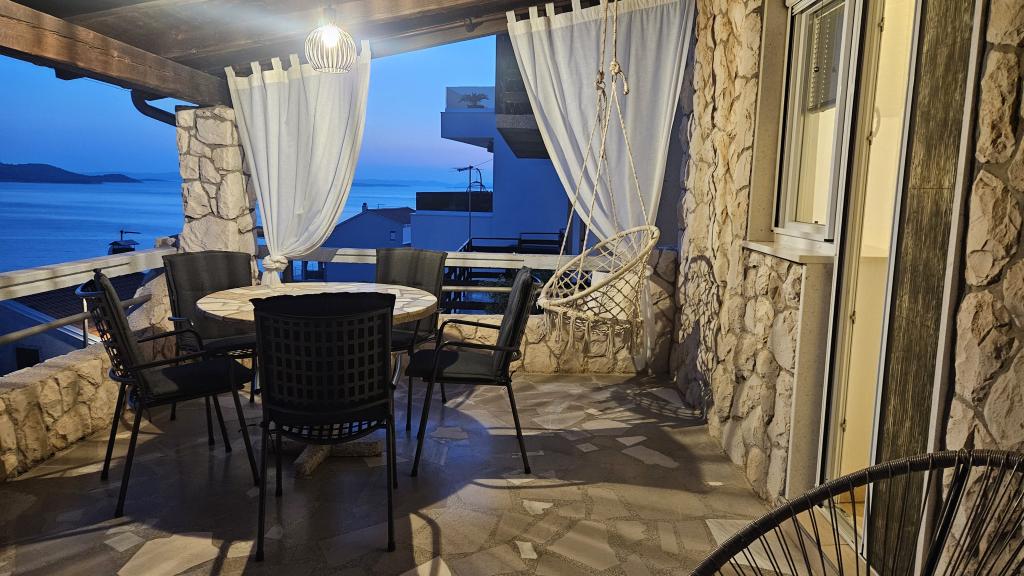 Teljesen és korszerűen felszerelt apartmanok csendes környéken, gyönyörű kilátással a tengerre, amely egészen Kornatiig nyúlik. Az apartmanok a második sorban találhatók a tenger felé, így csak lépcsőn kell lemenni a tengerhez, ahol kövezett strandok, kristálytiszta tenger és gyönyörű árnyék és fenyőfák illata van. A közvetlen szomszédságban pedig egy kavicsos strand található, amely a gyerekek igazi paradicsoma. Minden apartmanunkhoz tartozik őrzött parkoló és a vendégek használhatják a közös grillezőt is. A strandon éttermek és kávézók 5 percre találhatók. , a legközelebbi üzlet pedig 10 perces sétával elérhető.