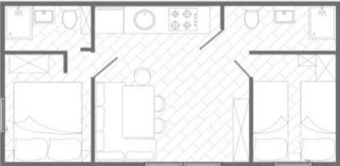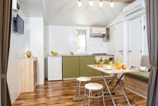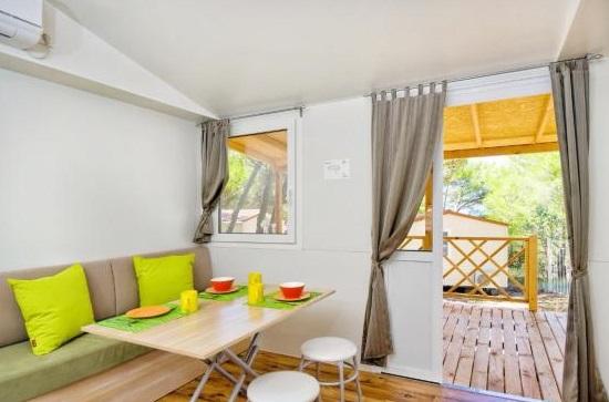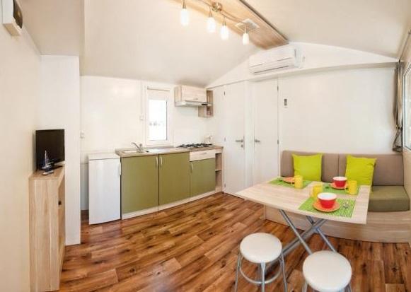 Légkondicionált mobilház 30 m-re a tengertől, 2 hálószobával, konyhával, 2 fürdőszobával, nappalival, terasszal, parkolóval, szabadtéri zuhanyzóval, grillezővel, nyugágyakkal és saját parkolóval. Háziállat megengedett.