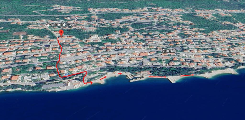 Lovor Apartman (31m²), társasház földszintjén, csendes helyen Dramaljban. 450m a tenger, Thalassotherapia, Adrenalin Park és túraútvonalak közelében. Ideális 2-3 felnőtt vagy család részére. Hálószoba (160x200), fürdő, terasz és felszerelt konyha (hűtő, tűzhely, mikro, vízforraló, kávéfőző, pirító, edények) nappalival (TV, kanapé 75x200/150x200). Klíma, ingyenes Wi-Fi és parkoló az udvarban.