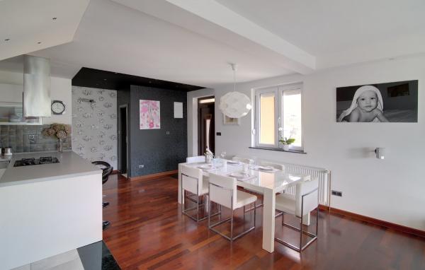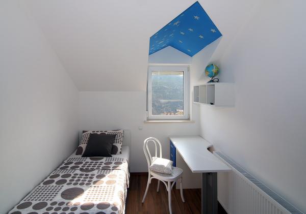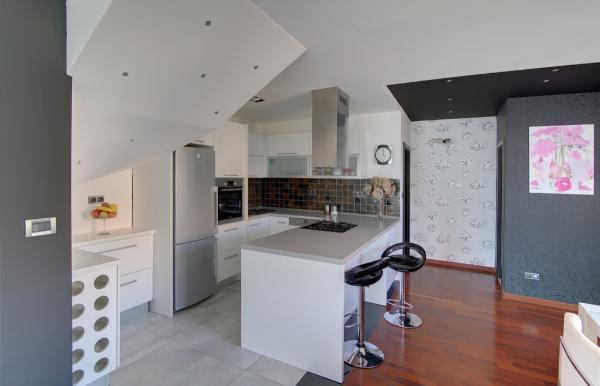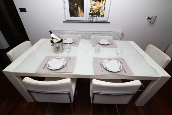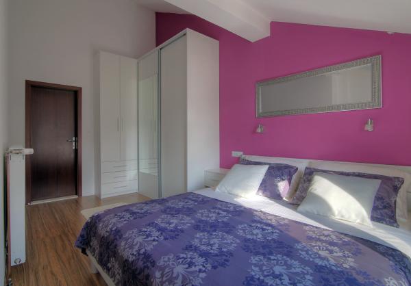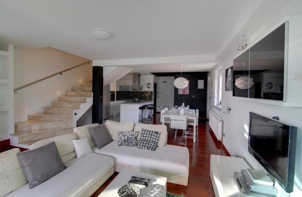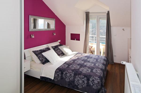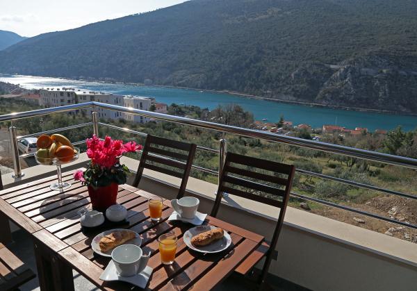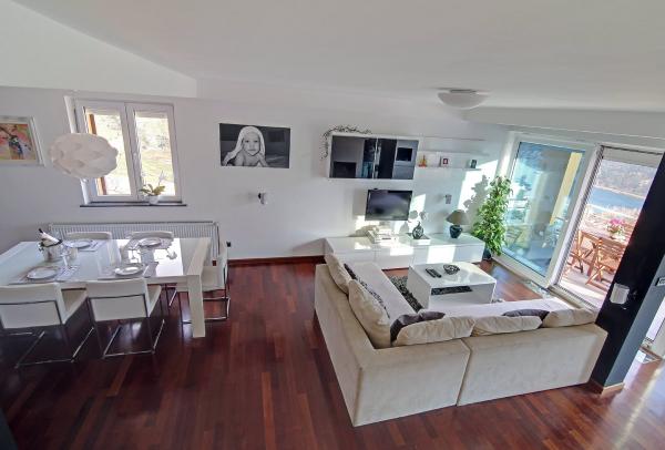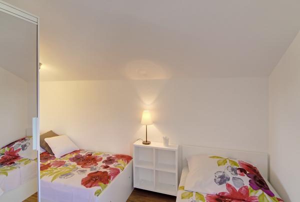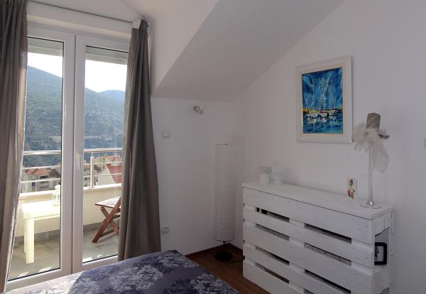 Modern berendezett kétszintes luxus apartman házban, 130 m2-es található a Nova Mokošica, mindössze 12 km-re a régi része Dubrovnik. Található egy csendes falu közelében, a olajfaligetek, a fák és a növényzet, miközben a teraszon és az erkélyről gyönyörű kilátás nyílik a folyóra Ombla, ACI Marina és a domb Srd. Az emeleten van két kétágyas szoba (kétágyas szoba), egy zuhanyzós fürdőszoba és egy hálószoba fürdőszobával (fürdőszobás szoba) van ellátva hidromasszázs kád két személy és egy hajszárítóval és erkéllyel rendelkezik. Az alsó szinten található egy külön WC és egy modern, teljesen felszerelt konyha (tűzhely, sütő, mosogatógép, mosógép, hűtőszekrény, mikrohullámú sütő, edények, vízforraló, kenyérpirító), étkező, tágas nappali LCD TV, belső teherautó és terasz . A lakás klimatizált, ingyenes vezeték nélküli internet (Wi-Fi), saját parkolóval és egy szabadtéri grill. A legközelebbi strand 5 km-re, élelmiszerbolt 150 m-es körzetben 300 méterre vannak bárok, gyorséttermek, bisztró.
