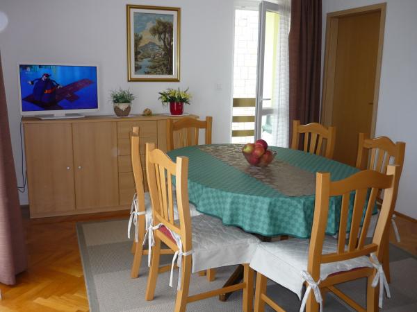 Apartmanok Skočibušić található 1km-re a város Omis a turisztikai Duce. Légkondicionált, teljesen berendezett, nagyon közel a gyönyörű homokos strand, amely lehet elérni anélkül, hogy átkelés az úton. Ideális gyermekes családok számára.