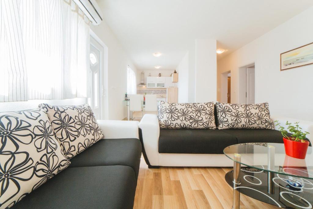 Az Apartments Chiara és Marijana egy Mali Rat nevű kis faluban található, 1 km-re Dugi Rat központjától, Omis és Split között. Az apartmanok családi házban helyezkednek el 3 emeleten, melyek közül kettő lakásokká alakul. Mivel a ház egy dombon helyezkedik el, látványos kilátás nyílik a tengerre és a szigetekre. A kavicsos strand 400 méterre található, és ha homokos strandot szeretne, a legközelebbi autóval 5 perc alatt elérhető Duce.