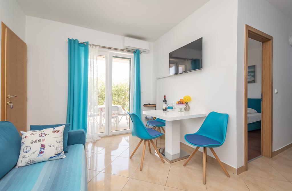 Az Apartments Rejo Dugi Rat kisvárosában, Omis riviérán található, egy csendes környezetben, gyönyörű panorámás kilátással a tengerre és Brac szigetére. A helység központjától kb. 400m-re, és minden turisztikai létesítmény található biziniban. Jelenleg 2 apartman kiadó. Minden apartman legfeljebb 4 fő számára alkalmas, 2 felnőtt és 2 gyermek részére. Mindkét apartman az első emeleten található. Minden apartmanban 1 hálószoba található, nagyméretű dupla ággyal, nappali 2 személyes kanapéággyal, konyha, fürdőszoba, tengerre néző erkély és a ház északi oldalán található terasz.