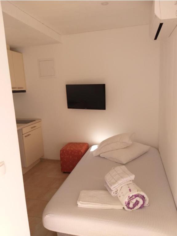 Apartmanok Kolumbo Élvezze tartózkodását az Apartmanok Kolumbo-ban, ideális helyen, mindössze egy perc sétára a gyönyörű kavicsos strandtól, a főtértől, pizzériáktól és kávézóktól. A szálláshely három szállásegységet kínál. Minden egység azonosan felszerelt, és a következőket tartalmazza: Légkondicionáló és ingyenes Wi-Fi. Műholdas TV. Saját fürdőszoba. Felszerelt konyha tűzhellyel, mikrohullámú sütővel, vízforralóval és hűtőszekrénnyel. A szállásegységek elrendezése: Földszint: Két könnyen megközelíthető apartman. Első emelet: Teraszos apartman tengerre néző kilátással. Parkolás minden vendég számára biztosított. Exkluzív előny éttermünkben: Vendégeink 10% kedvezményt kapnak az ebédre és a vacsorára családi éttermünkben, a Marina Restaurantban. Élvezze a friss helyi specialitásokat megfizethető áron.