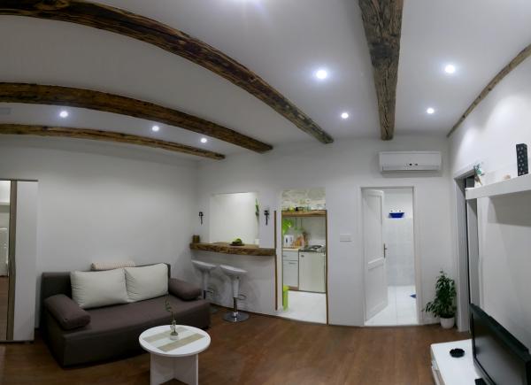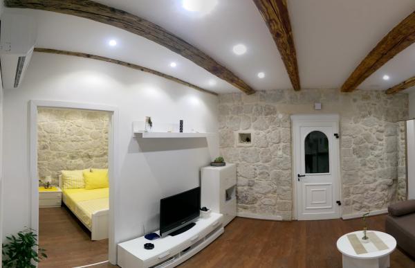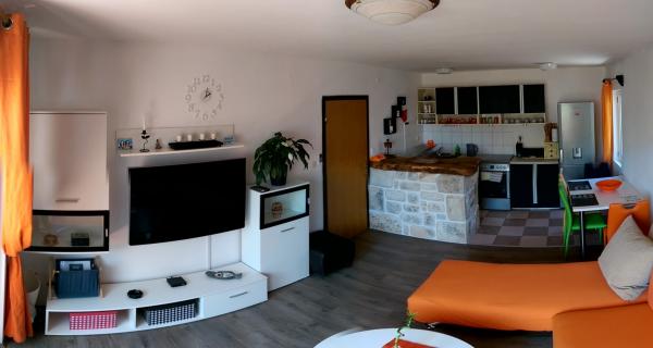 Kőház, két új lakások. A létesítmény található, 5-6 perc sétára lefelé a Graz központjában, strand, tenger, éttermek, kávézók és üzletek. Az első apartman (2 2) apartman a kő része a ház földszintjén, teljesen felújított régi dalmát stílusú. Ez az egyik hálószoba egy franciaággyal és egy nappali kihúzható kanapéval, amely kiterjeszti a méretei egy másik nagy ágy két. Ez is egy konyha és fürdőszoba zuhanyzóval. Fel van szerelve légkondicionálóval, internet, LCD TV, műholdas. A ház saját kerttel, asztallal és székekkel. A második lakás (4 2) található az első emeleten, két hálószoba, két dupla ággyal, egy nagy nappali egy kanapéval nagy méretű, nagy, teljesen felszerelt konyha, fürdőszoba és erkély asztallal és székekkel. Az apartman internet, légkondicionáló, LCD TV-vel és műholdas. Parkolás található a ház mögött, és ingyenes. Minden vendég használhatja az egész kert, szabadtéri konyha, egy szoba egy mosógép, grill és egy nagy asztal székekkel
