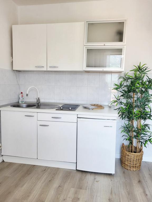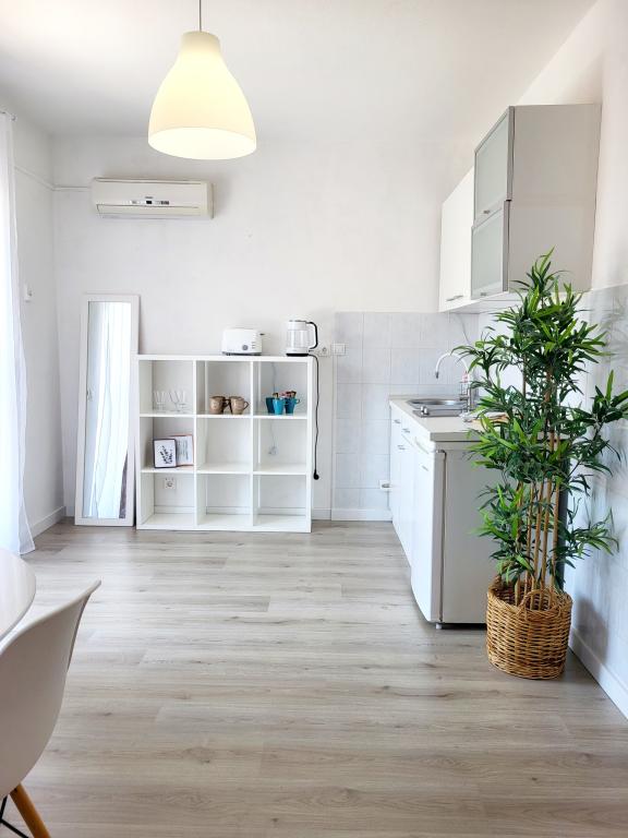 A stúdióapartmanokból álló létesítmény csendes, többnyire családi házakból álló környezetben található, körülbelül 400 méterre a tengertől és az első strandtól, valamint 500 méterre a központtól.